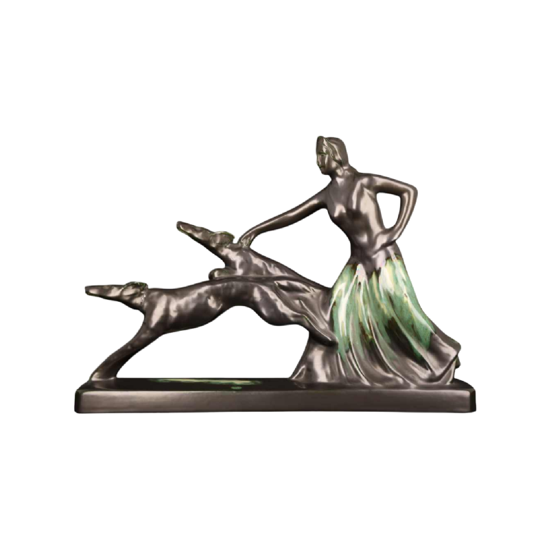 (https://www.artaplaza.com/fr/sculptures-figuratives-femmes/6366-faiencerie-de-thulin-la-dame-aux-levriers-sculpture-en-faience-emaillee-ca-1930.html)