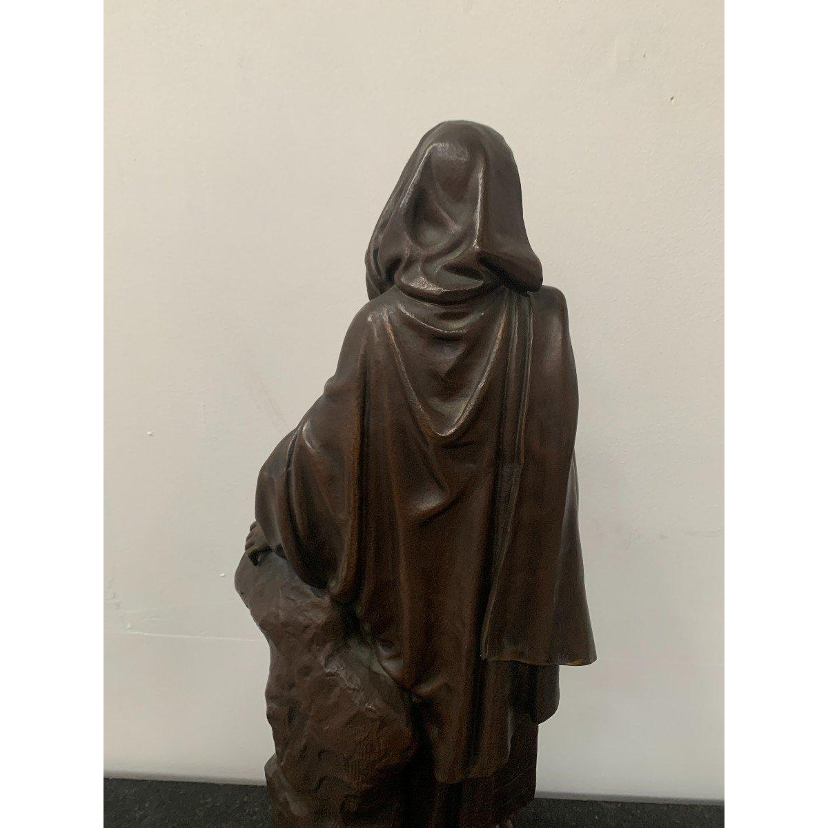Sculpture en bronze sculpté à patine brune représentant une jeune fille à la cape.
