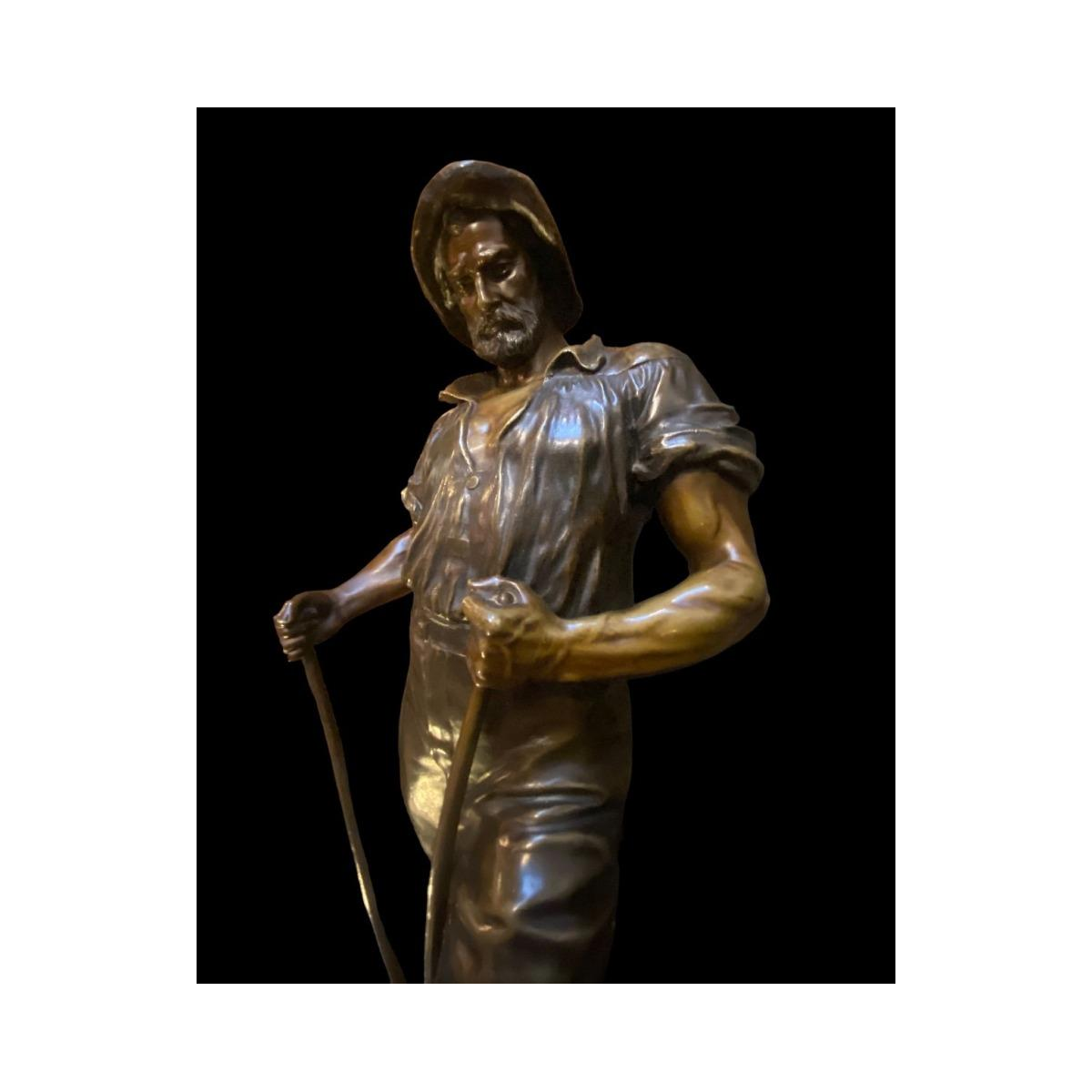 Très forte sculpture de l'artiste. Une très belle patine nuancée pas facile à faire. Avec la base en marbre la sculpture fait 72cm. Reinhard Schnauder est né à Plauen dans le Vogtland en tant que fils du sculpteur sur bois Julius Schnauder, qui a vécu à Dresde de 1865 à 1880. De 1875 à 1876, il étudie à l'Académie des Beaux-Arts de Dresde et est l'élève d'Ernst Hähnel et de son proche collègue jusqu'en 1881. À partir de 1886, il travaille en indépendant dans son propre studio à Dresde. En 1886, il devient membre de l'Allgemeine Deutsche et de la Coopérative artistique de Dresde. En plus des sculptures, ses œuvres artistiques étaient principalement de petites sculptures, des portraits et des œuvres d'art de cimetière. Reinhard Schnauder était le père du sculpteur Richard Georg Schnauder.