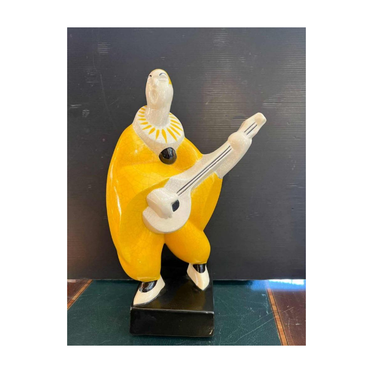Sculpture Art Déco “ Le joueur de banjo” en faïence craquelée.
