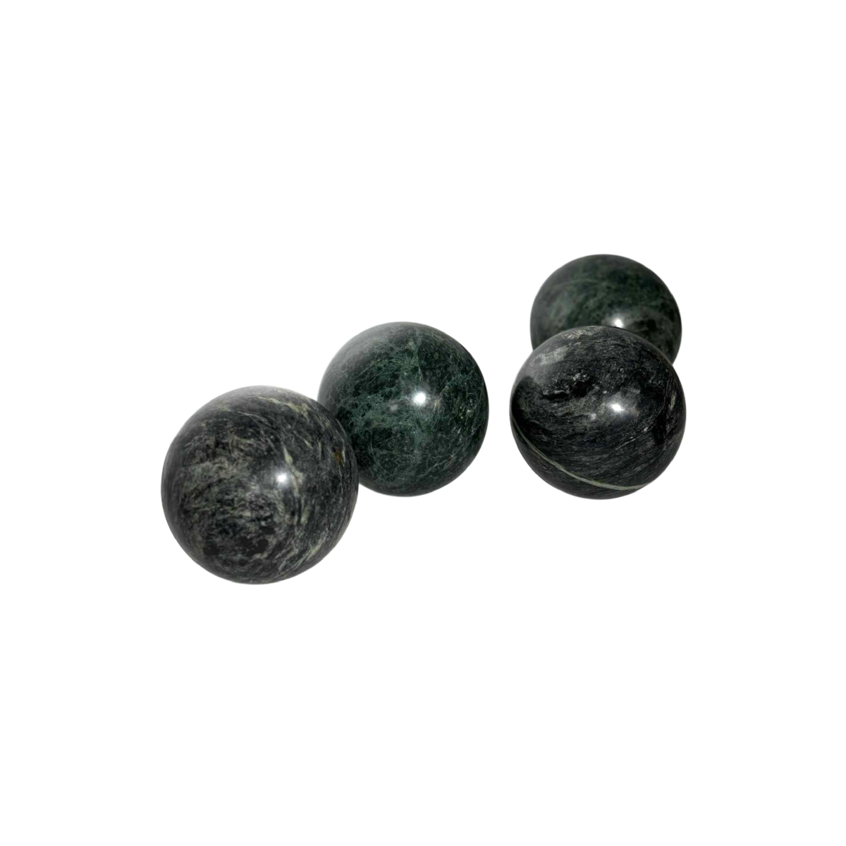 Ensemble de 4 sphères décoratives en marbre vert, XXe siècle