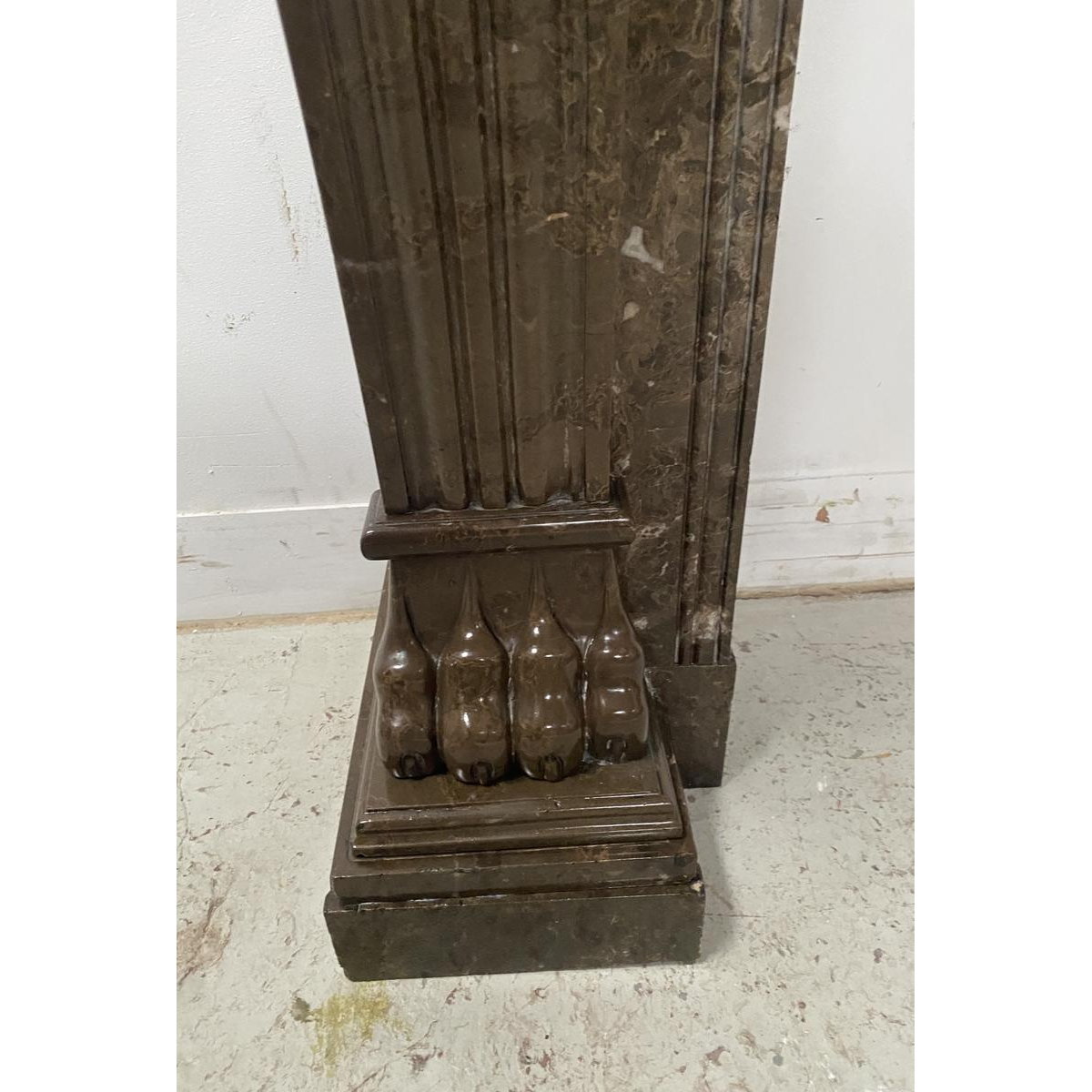 Cheminée époque Napoléon III à pieds griffes en marbre moucheté comportant deux jambages galbés