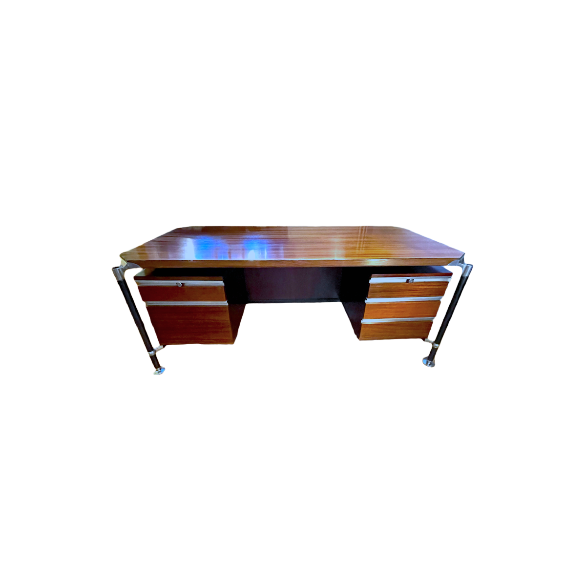 Important bureau de direction italien à double caisson, fabriqué vers 1962 par la société MIM Roma Furniture pour les designers Ico Parisi et Alexandro Ferrari, une icône du design !