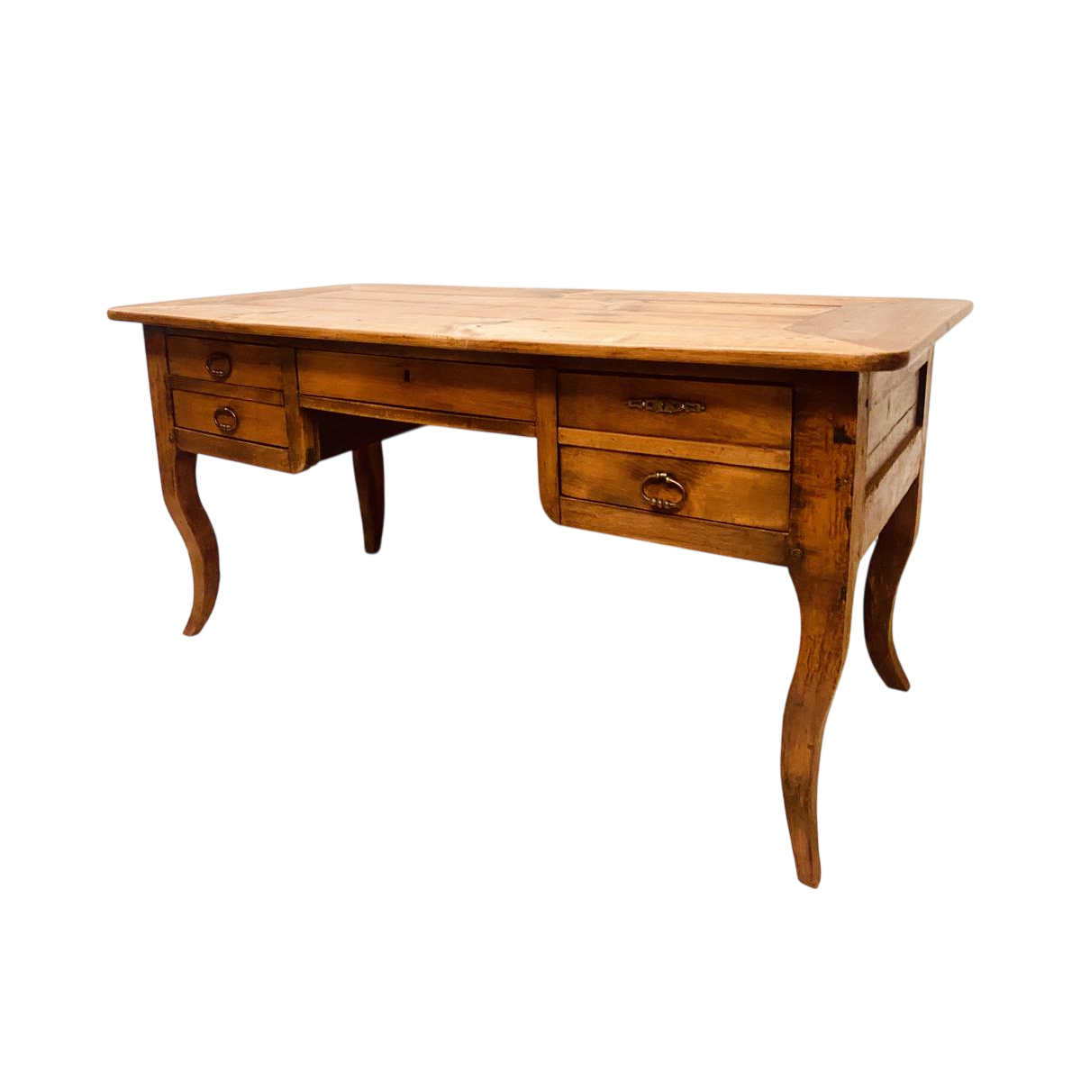 Bureau provincial à tiroirs de style Louis XV, merisier massif, vers 1900