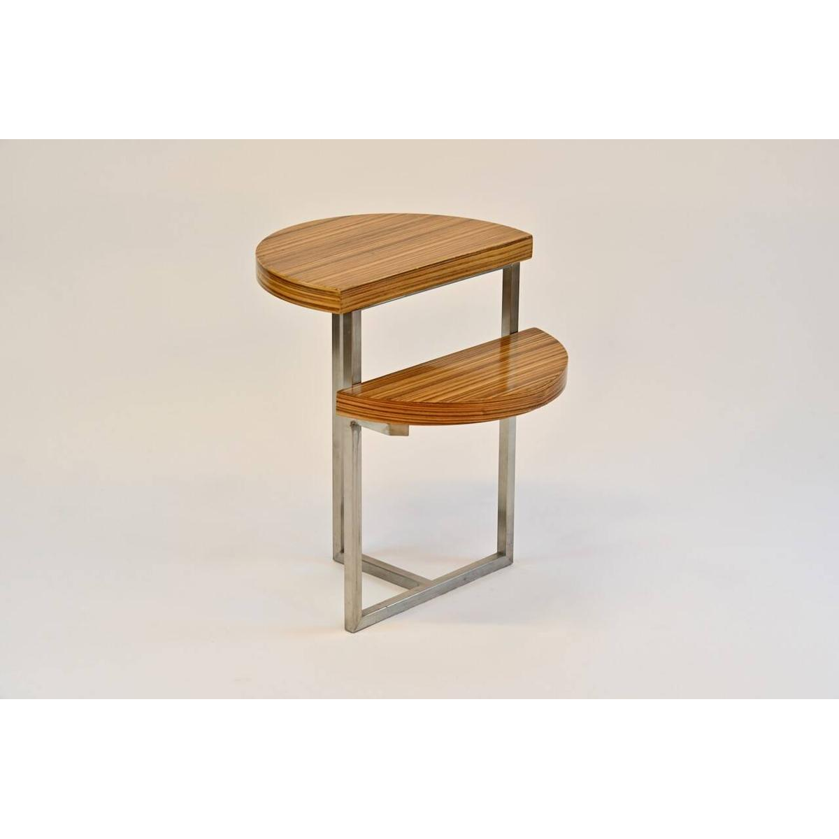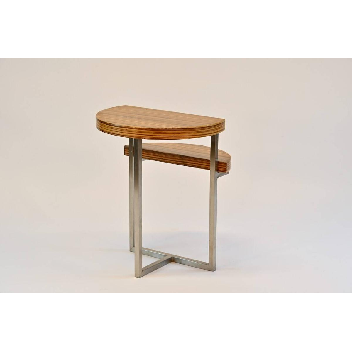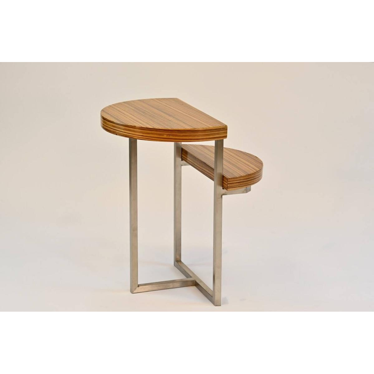Table d'appoint en zebrano, piétement inox