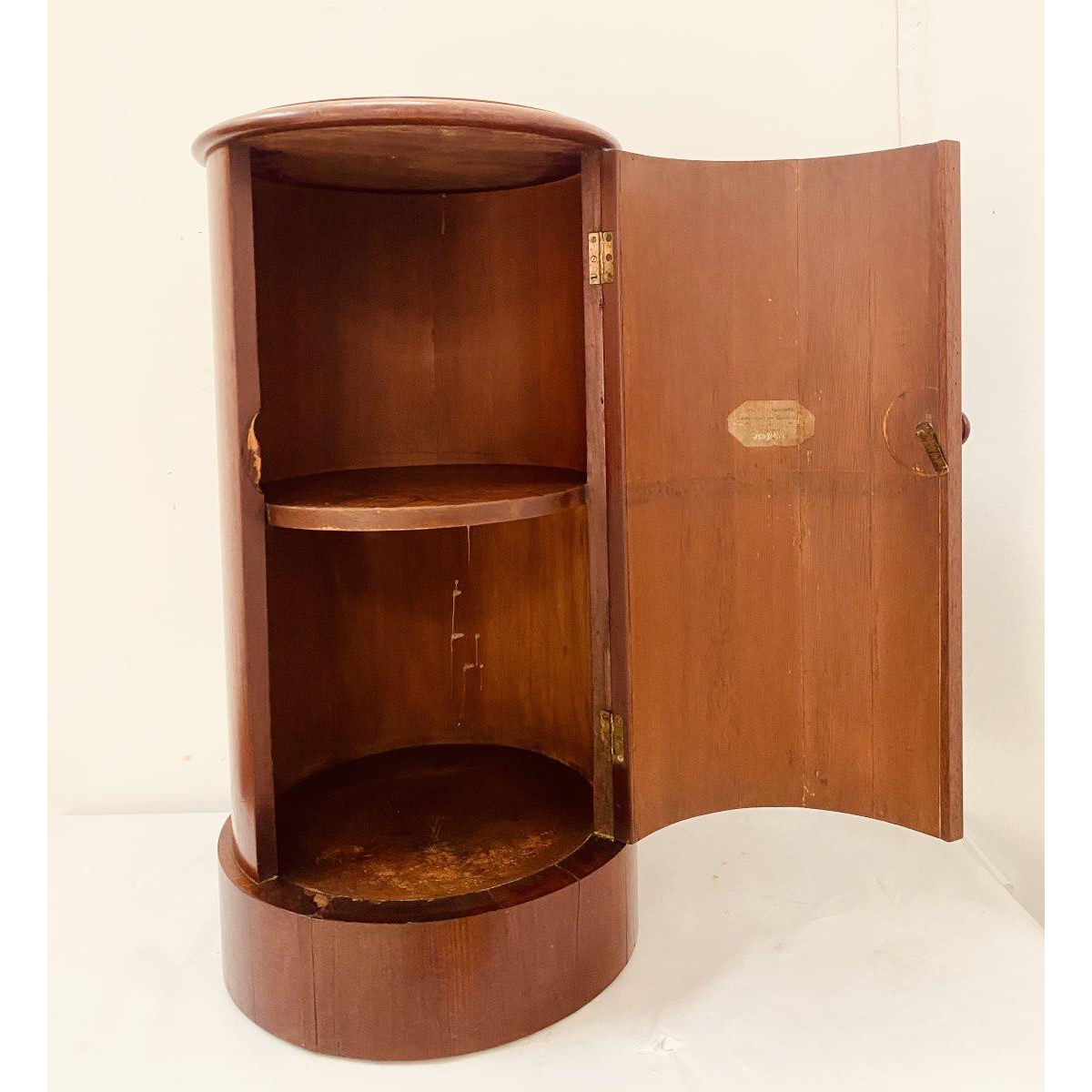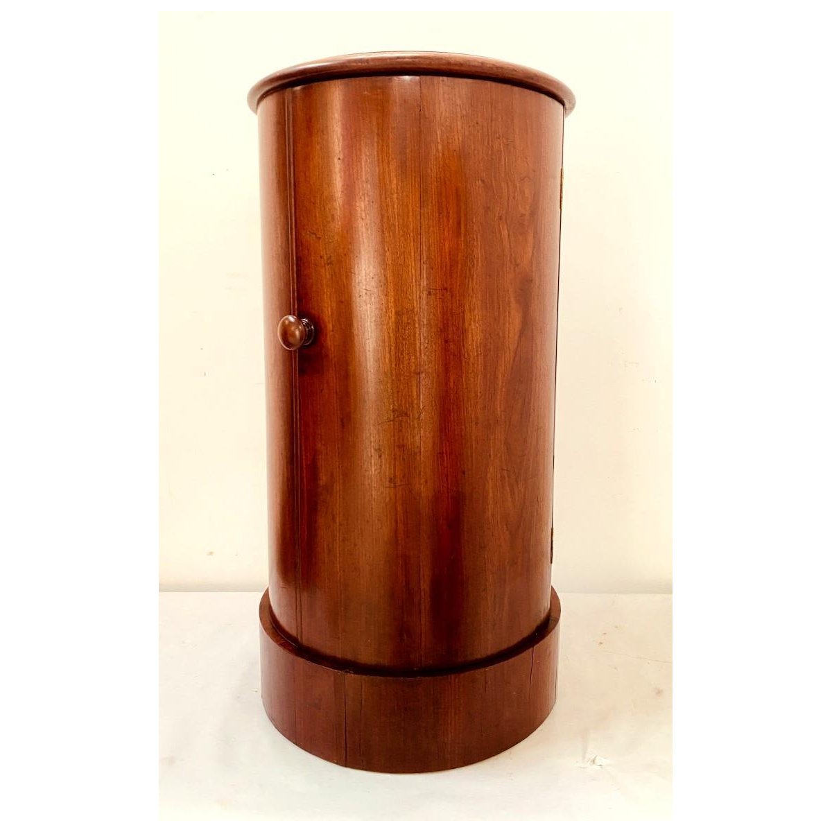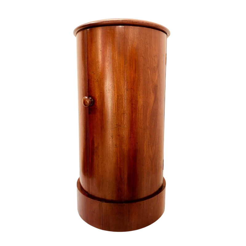 Table de chevet de forme cylindrique ouvrant par une porte.