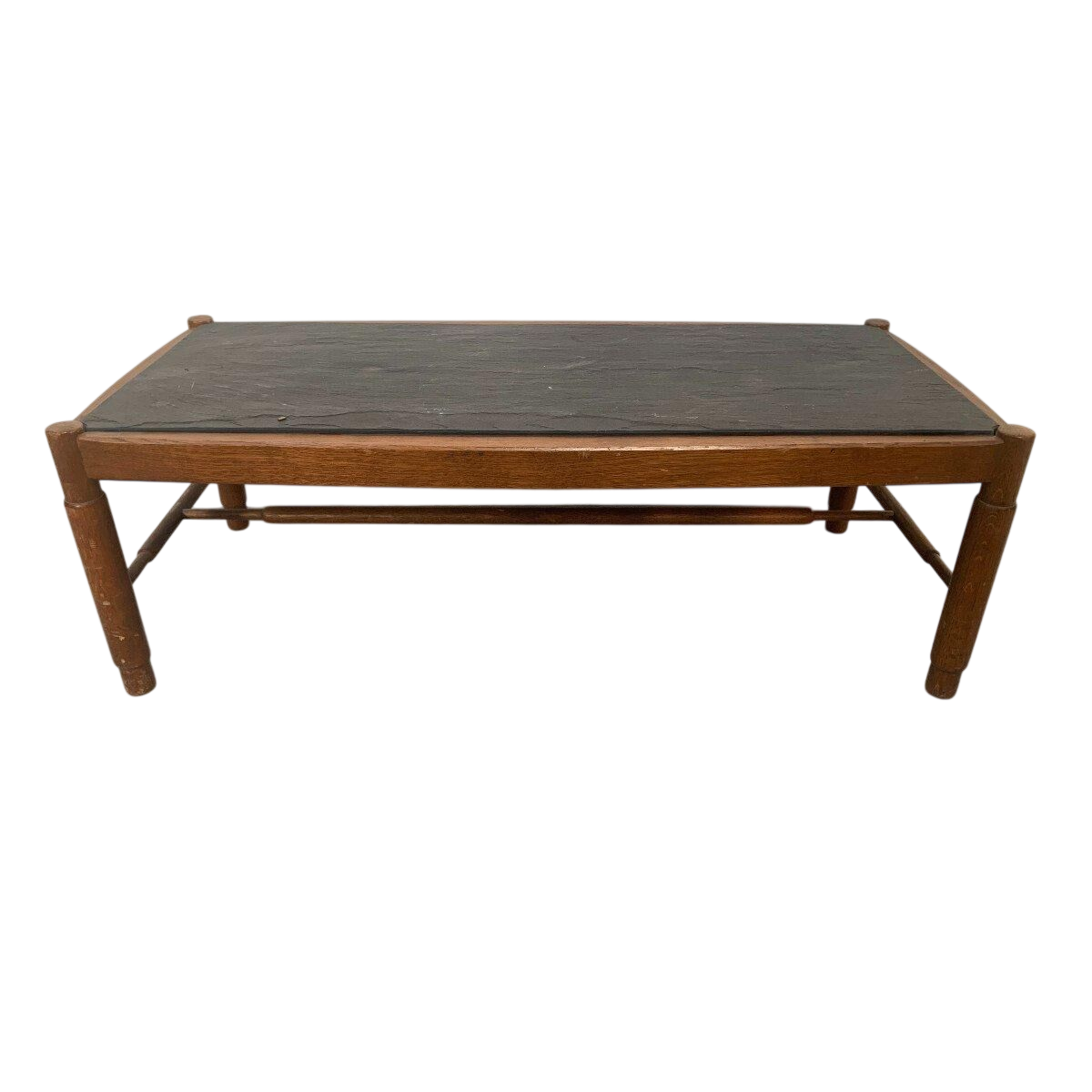 Table basse de salon en chêne, plateau d’ardoise, Design années 1970s