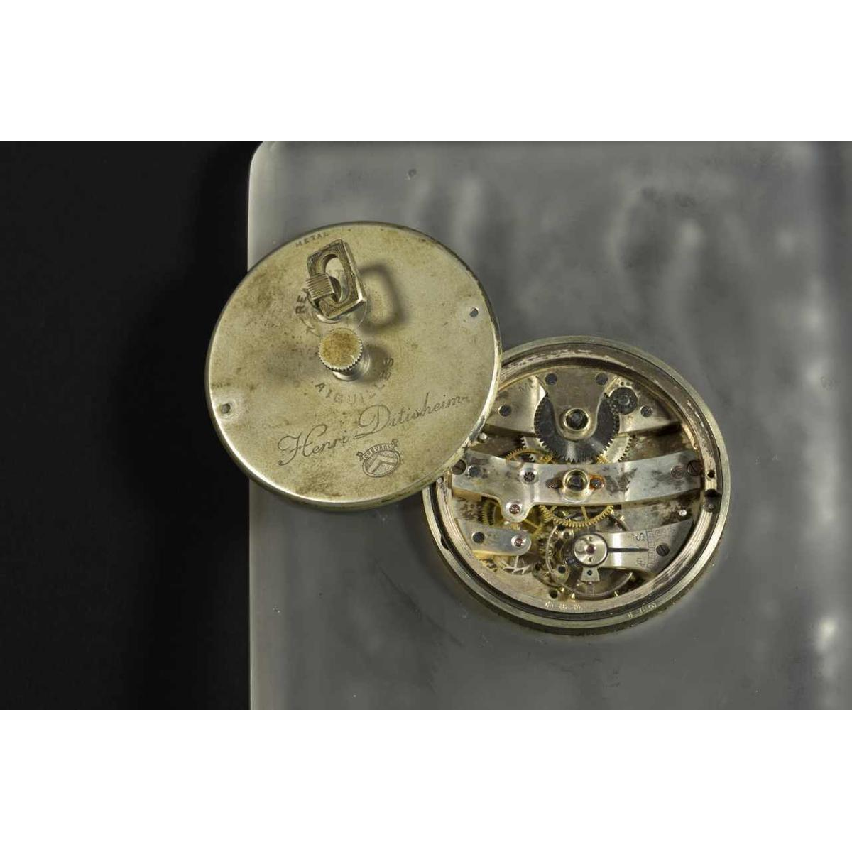 Mouvement suisse « HENRI DISTEHEIM » (indiqué sur le cadran verso) à huit jours.