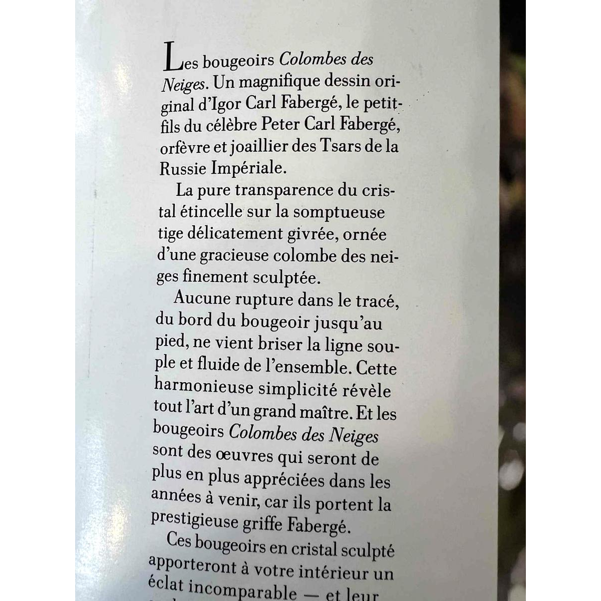 Ce formulaire permet uniquement de nous faire part d'un contenu illicite sur le produit : Igor Carl FABERGÉ / Franklin Mint «Les Colombes des neiges» chandelier en cristal.