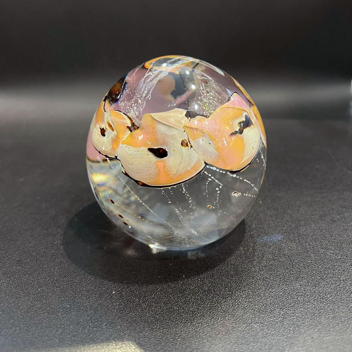 Louis Leloup presse papier en Cristal à décor d’oxydes métalliques signé Louis Leloup (deux signatures).