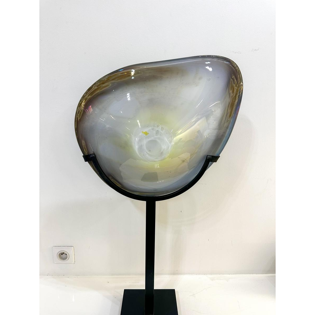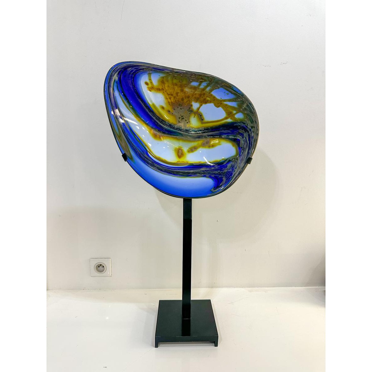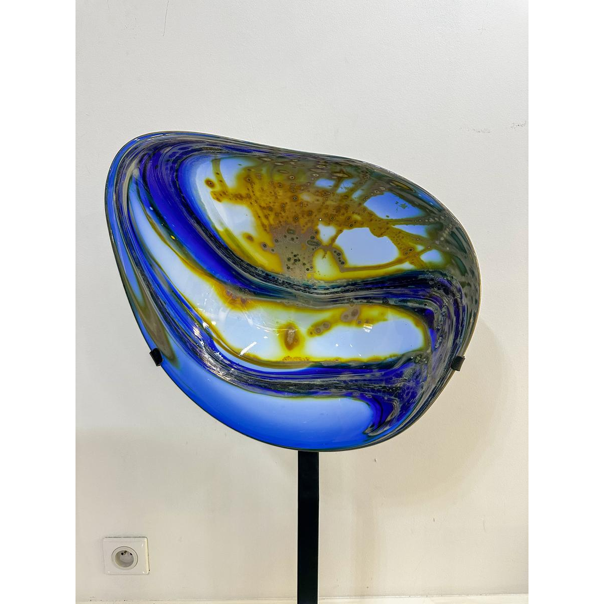 Sculpture en verre, signée Louis Leloup, montée sur un présentoir en fonte. A cause du montage, la signature est à l'envers au dos de la pièce.