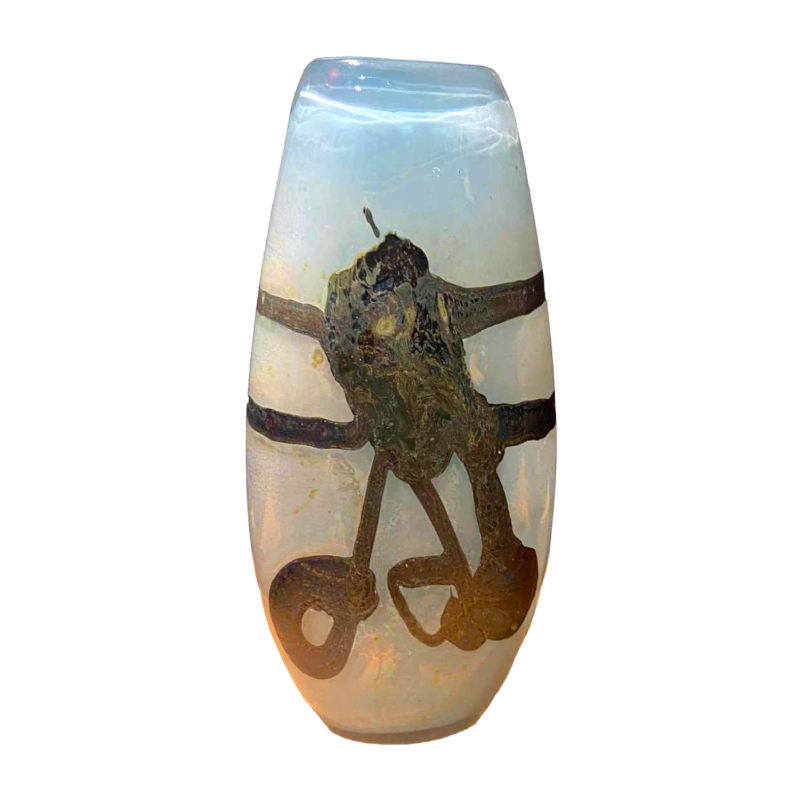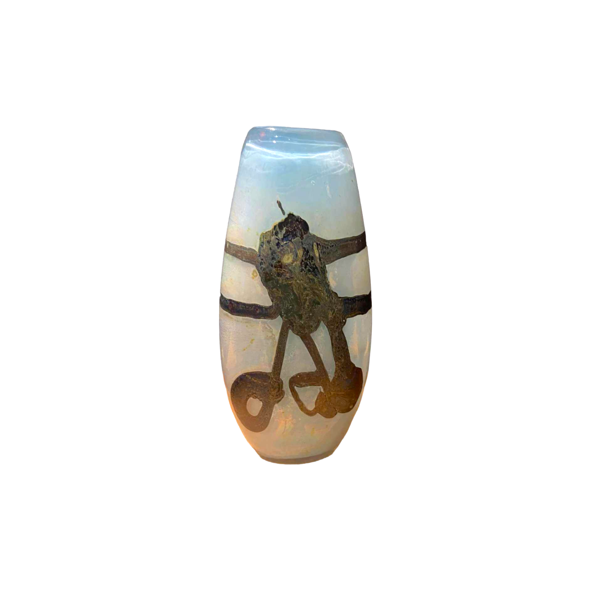 Samuel Herman (1936-2020) / Val-Saint-Lambert : Vase vers 1970, modèle de la série « Eldorado », cristal soufflé bouche, décor marmoréen en intercalaire avec émaux de couleur bleu, monogrammé SJH à la pointe sous la base, porte l'étiquette du Val Saint-Lambert.