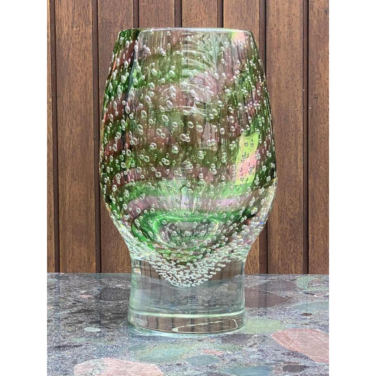 Ce formulaire permet uniquement de nous faire part d'un contenu illicite sur le produit : Arnaldo Zanella Murano, vase en verre bullé en spirale rose et vert, ca 1960.