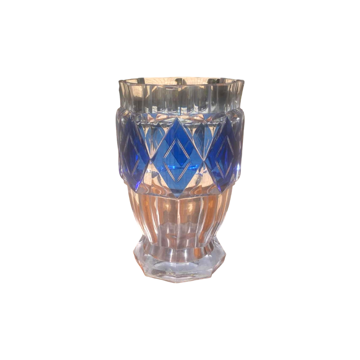 Grand vase Art Déco, Val St Lambert, Charles Graffart, cristal taillé, ca 1930