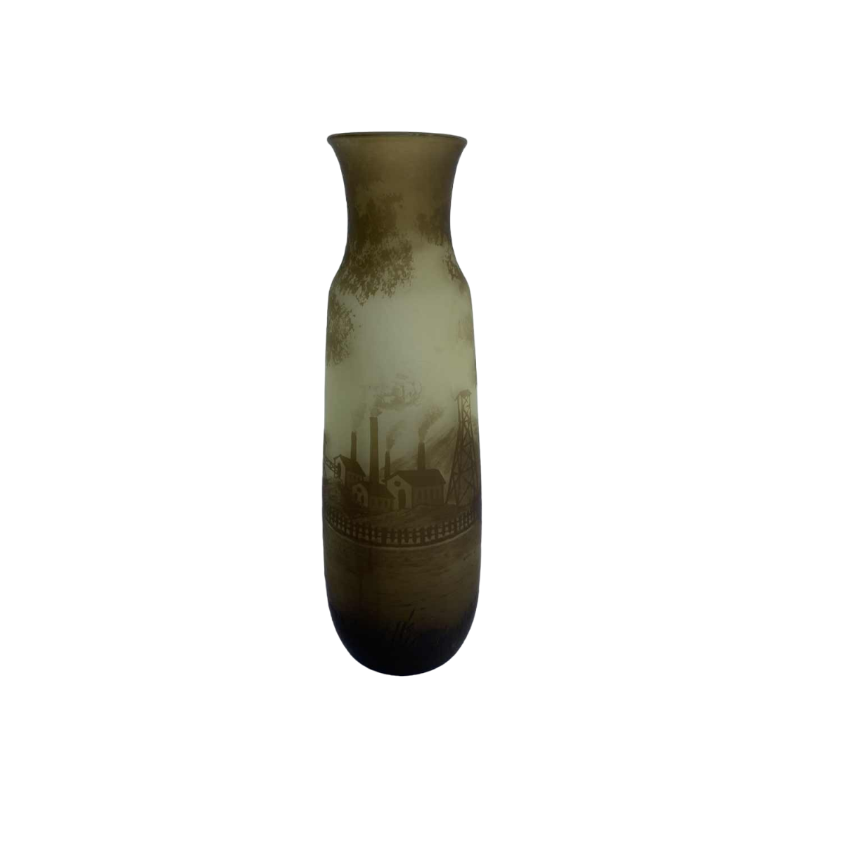 Val-Saint-Lambert, vase multicouches à décor industriel de mine de charbon, ca 1910