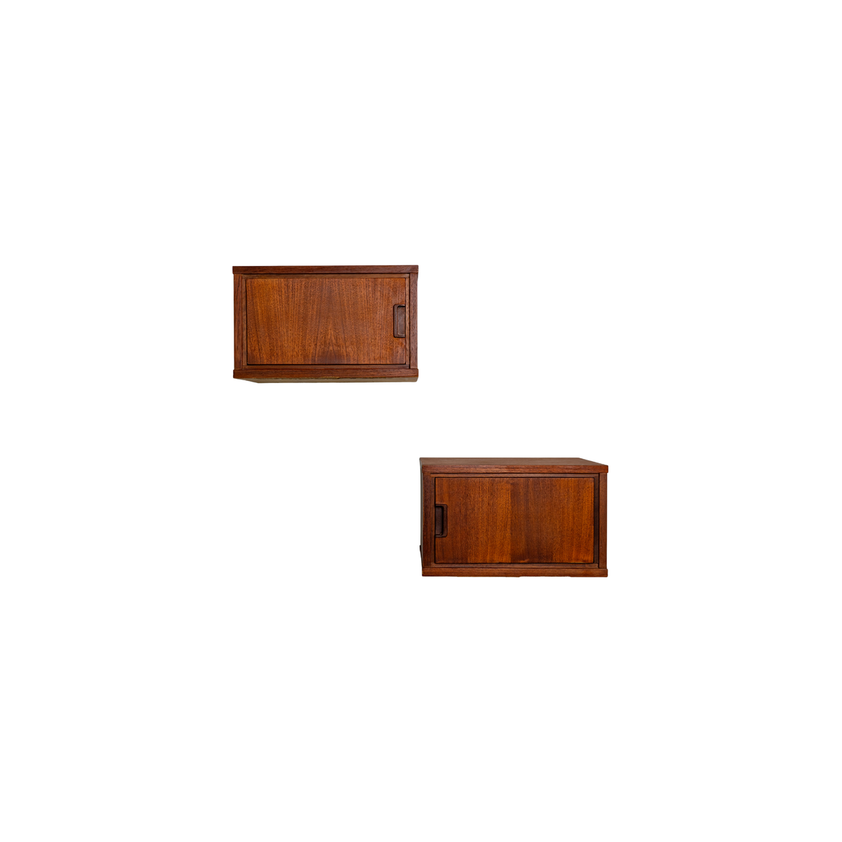 Set van 2 vintage zwevende (hangende) nachtkastjes in teakfineer.