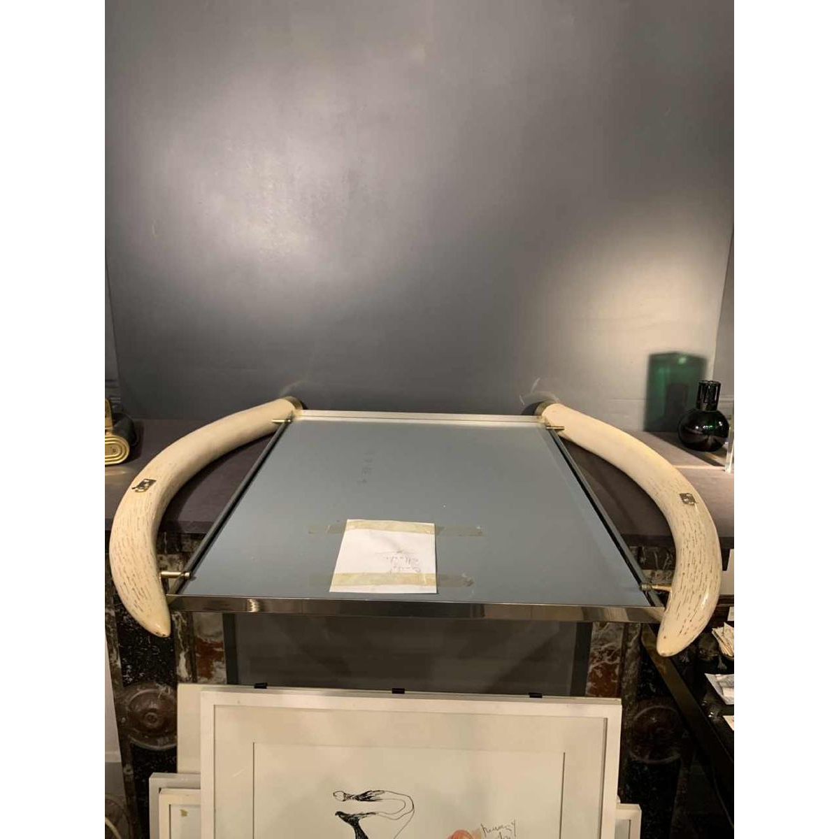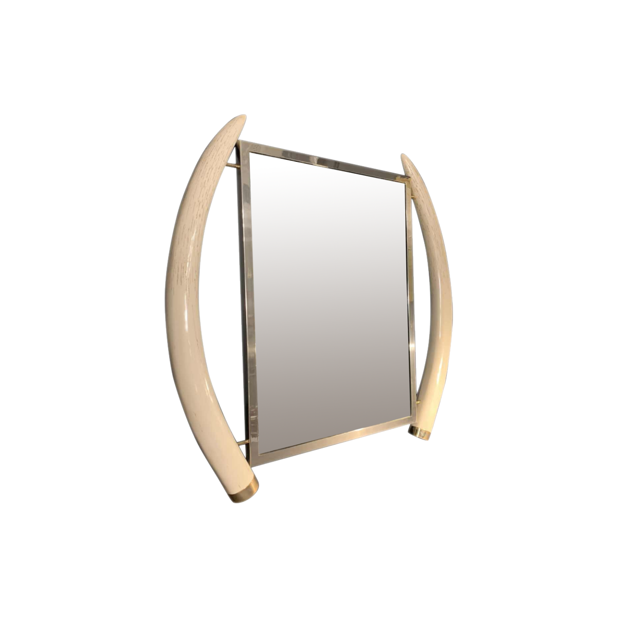 Spiegel uit de jaren 70 "valse slagtanden van olifanten", chroom en messing, Hollywood Regency-stijl, gemaakt door de uitgeverij VALENTI & Co (Barcelona).