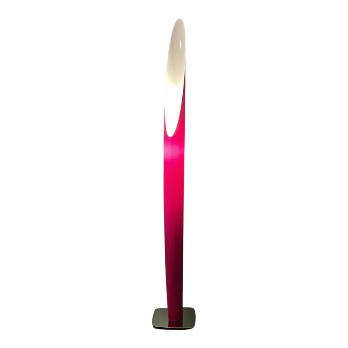 Iconische KDLN-lamp in fuchsia plexiglas met een chromen voet. Ontworpen door Mario Rusconi Clerici in 2001.