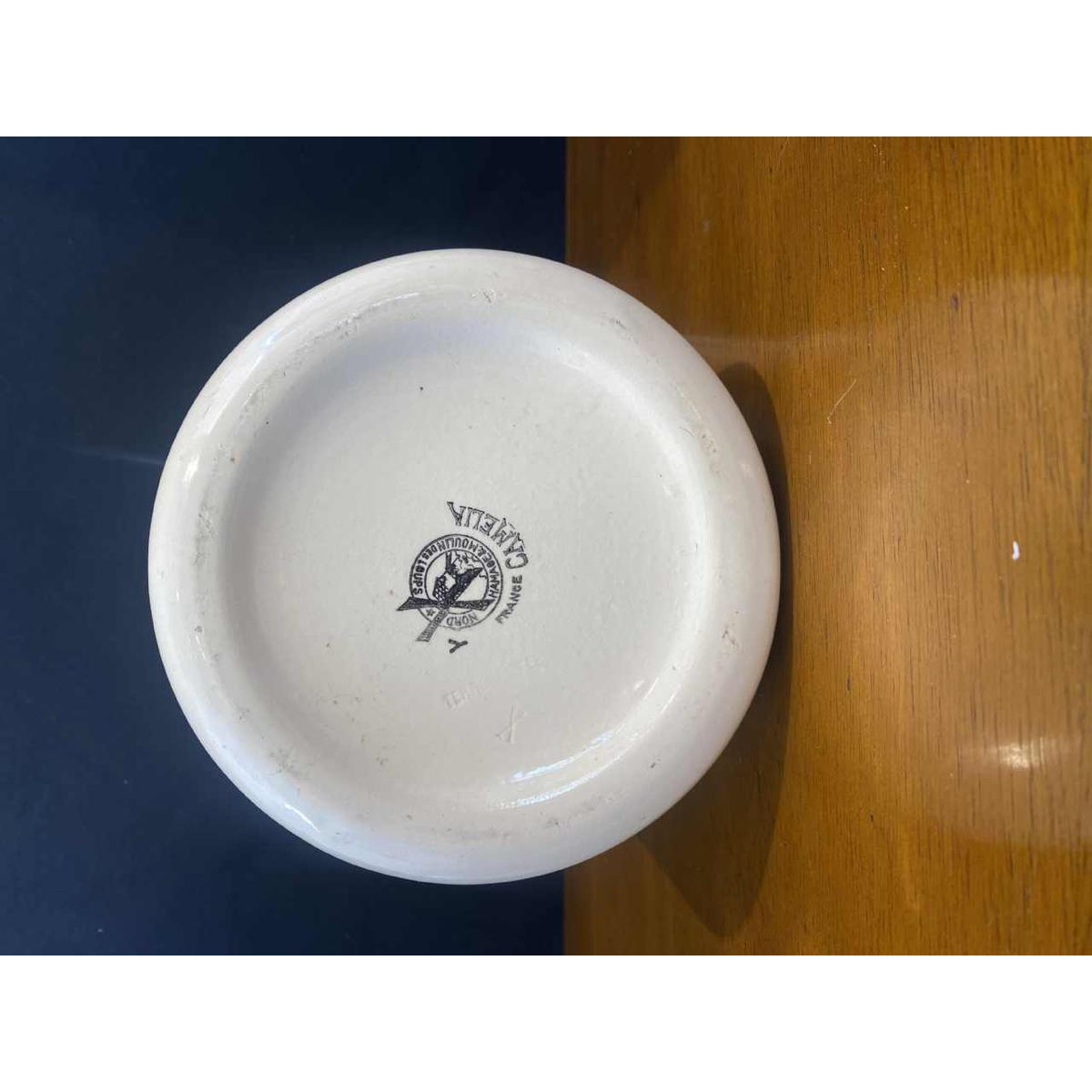 De “Société Amandinoise de Faïencerie” en “Ceranord”, opgericht in respectievelijk 1900 en 1908, waren de enige fabrieken die tijdens de Eerste Wereldoorlog in bedrijf bleven. Na een fusie in 1923 vormden ze de “Manufacture du Moulin des Loups-Hamage” met vijf fabrieken. De meeste fabrieken sloten echter tussen 1952 en 1954, om plaats te maken voor een laatste bedrijf, “Les Grands Etablissements Céramique”, dat in 1962 sloot. Schenkkan 30cm hoogte 17cm diameter Wastafel 38.5cm diameter