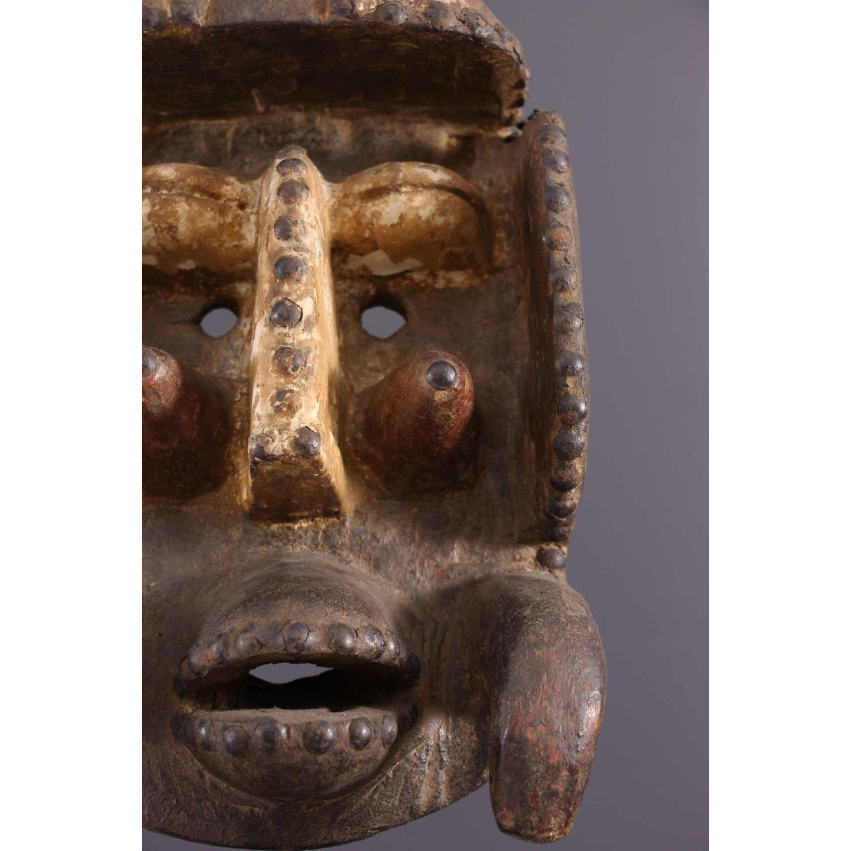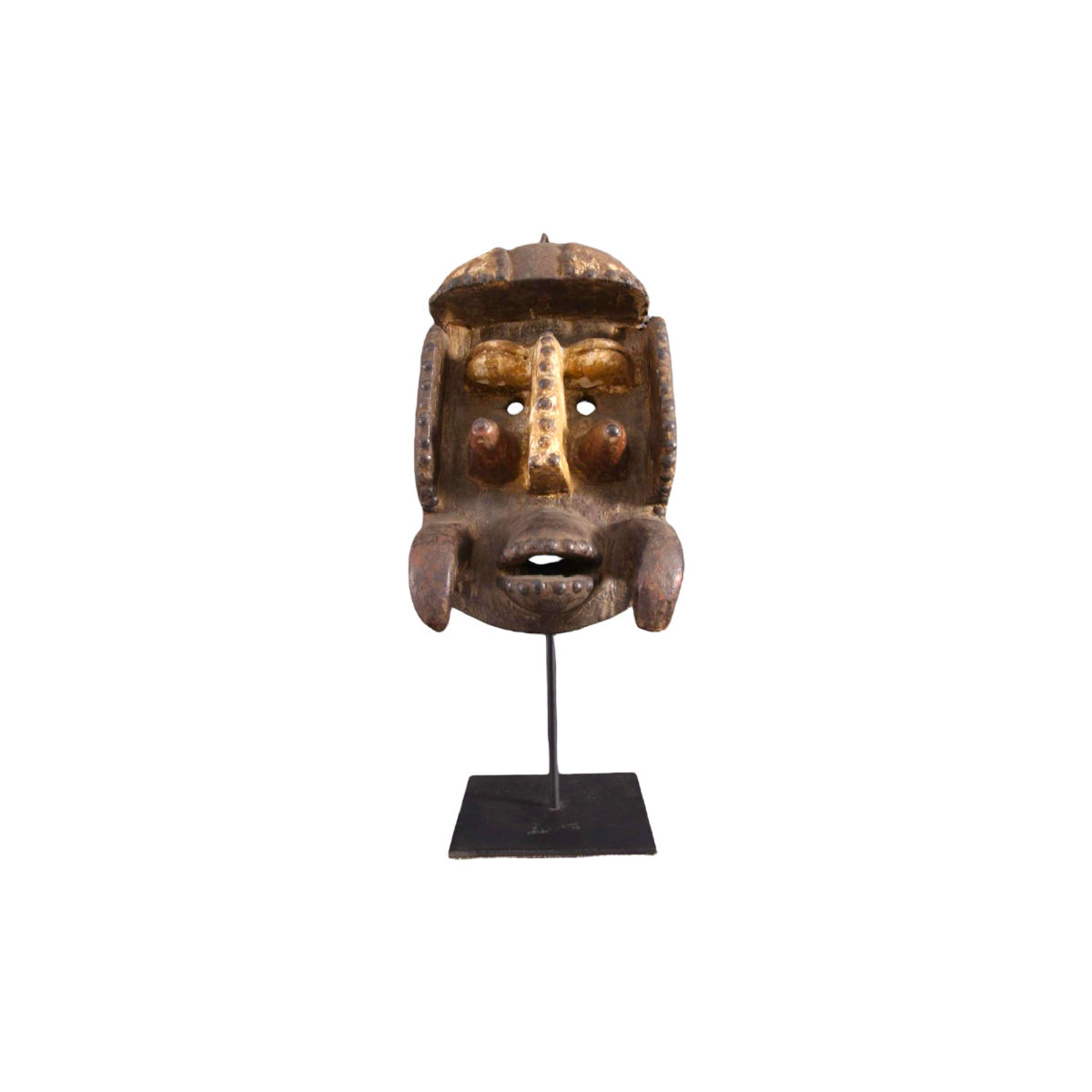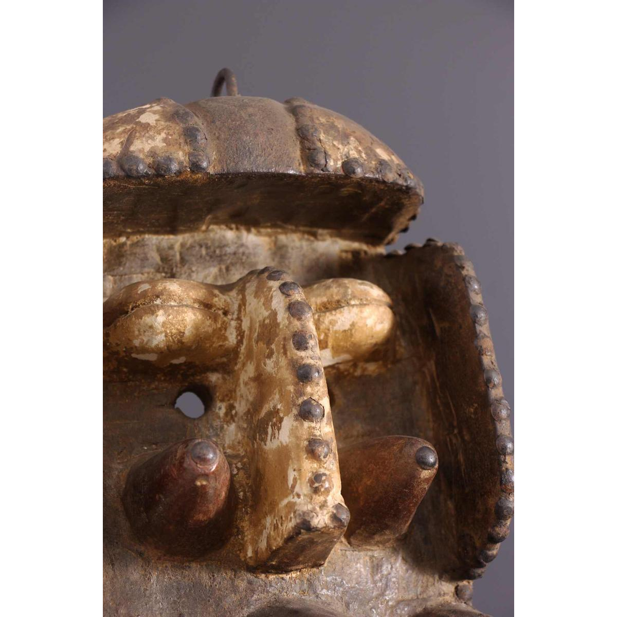 Dit masker heeft verschillende uitsteeksels, met bekledingsnagels die de donkere patina versterken. Het voorhoofd lijkt op de helm van een krijger, een typisch kenmerk van deze maskers die bedoeld zijn om angst in te boezemen. Deze maskers, die in het westen van Ivoorkust vooral gebruikt werden door de Bété, werden beà¯nvloed door de Gla Glaé maskersamenleving van de Wobé en Guéré bevolkingsgroepen en vormden een groep die bekend staat als de Wé, wat "mannen die gemakkelijk vergeven" betekent.