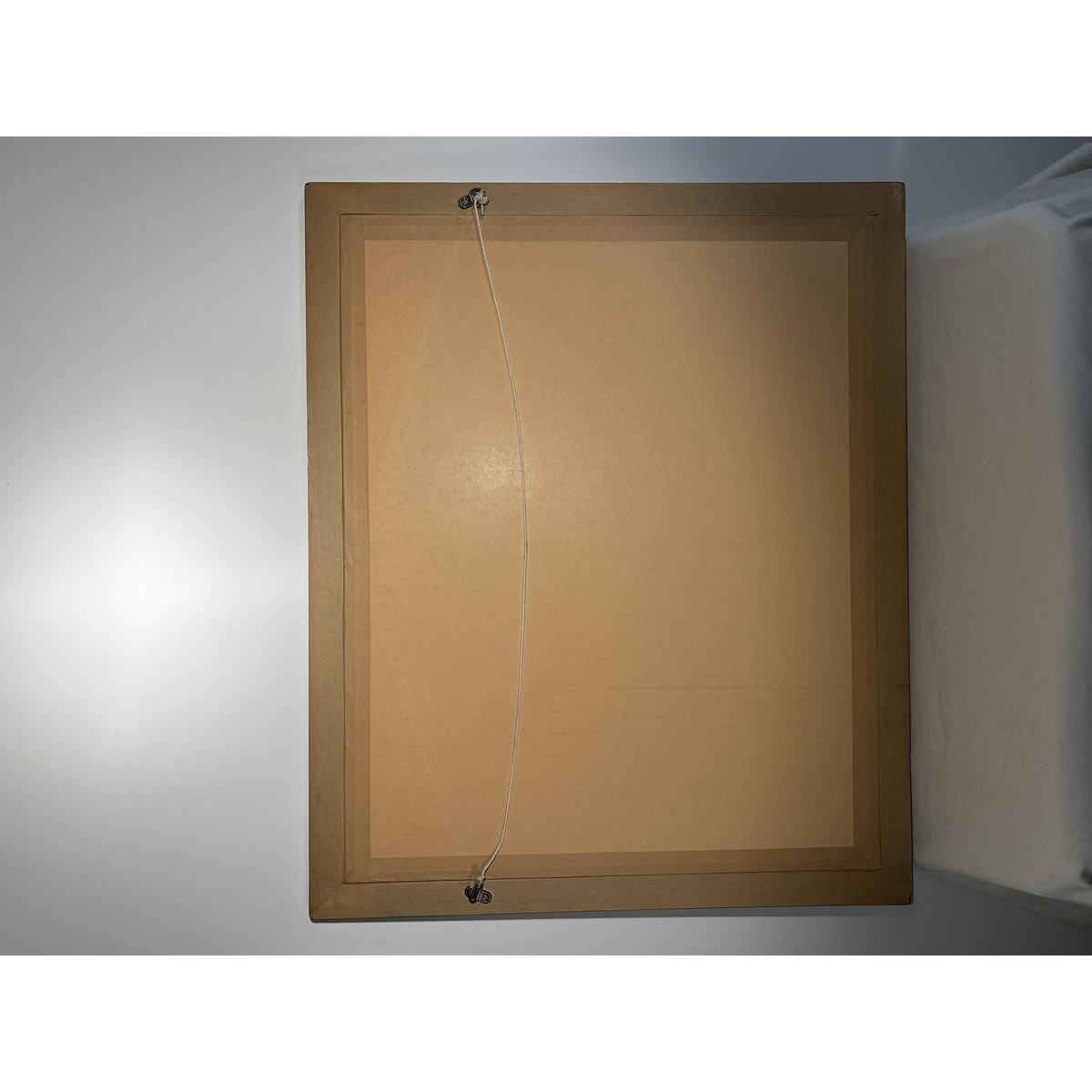 De compositie is opgebouwd uit grote kleurvlakken, gedomineerd door blauw, beige en wit, waardoor een diffuus, bijna wazig licht ontstaat, dat doet denken aan een strand buiten het seizoen of een late namiddag.