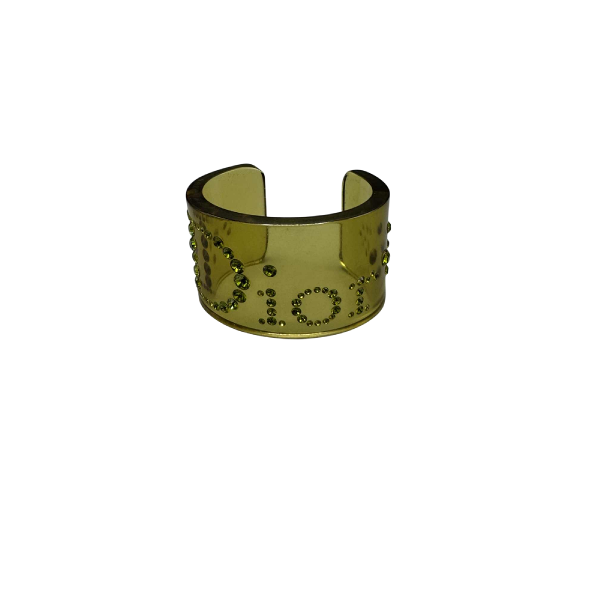 Christian Dior, manchet armband van groen doorschijnend bakeliet en Swarovski-steentjes