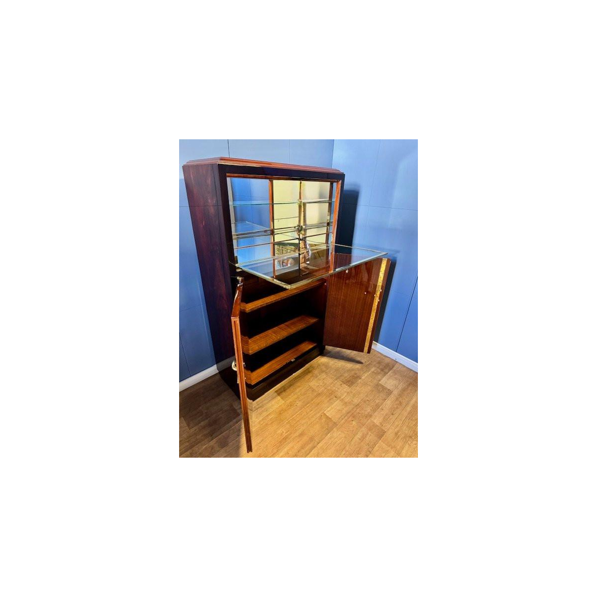 Art Deco vitrine of bar, fineer en gepolijst messing, Frankrijk circa 1930 - gerestaureerd
