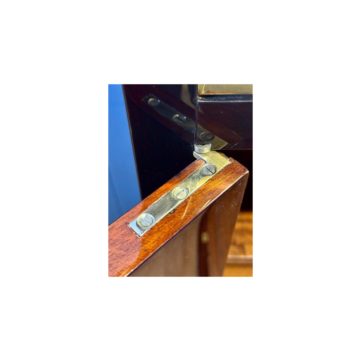 Dit prachtige meubelstuk, gefineerd met zeldzame, kostbare houtsoorten en gepolijst messing, is zeer decoratief! Het is zeer elegant en elegant! Het is gerestaureerd met een gepolijste pianolakafwerking!
