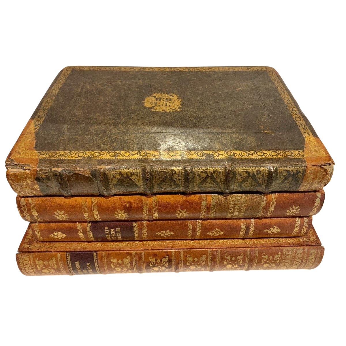 Een serie van vier trompe-l'œil-boeken.