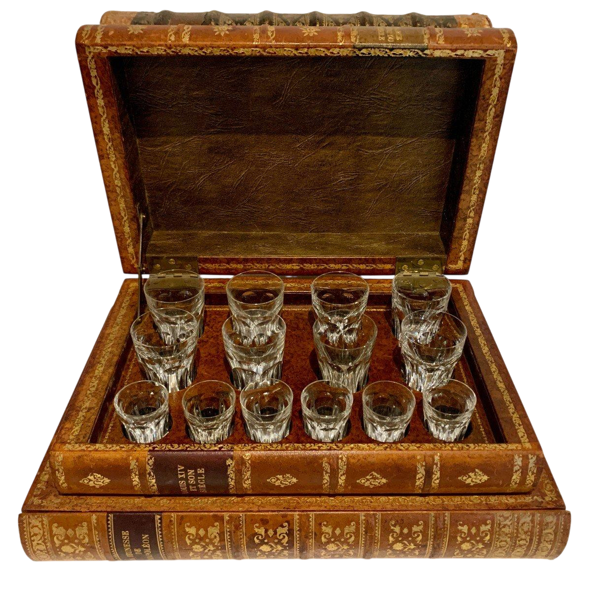 Drankkast en spellenkist vermomd als antieke boeken – 20e eeuw