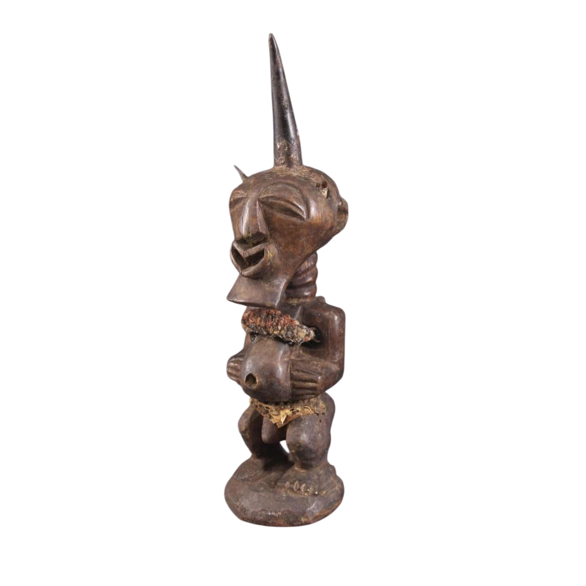 Deze beschermende voorwerpen, die gebruikt worden om huizen te beveiligen, behoren tot de meest gezochte in Afrika. De Nkisi fungeert als bemiddelaar tussen godheden en mensen. De grotere beelden worden collectief door de dorpen bewaard, terwijl de kleinere aan een individu of een familie toebehoren. In de 16e eeuw verlieten de Songyes de Shaba regio om zich op de linkeroever van de Lualaba te vestigen. Hun samenleving is georganiseerd volgens een patriarchaal model. Hun geschiedenis is nauw verbonden met die van de Luba, met wie ze gemeenschappelijke voorouders hebben.