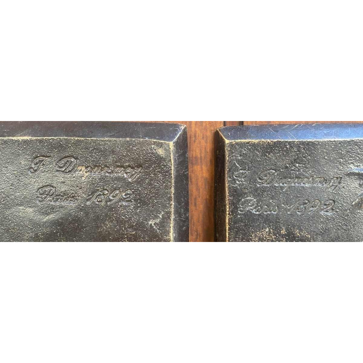 Paar bronzen bas-reliëf platen gesigneerd F Duquesnoy 1892