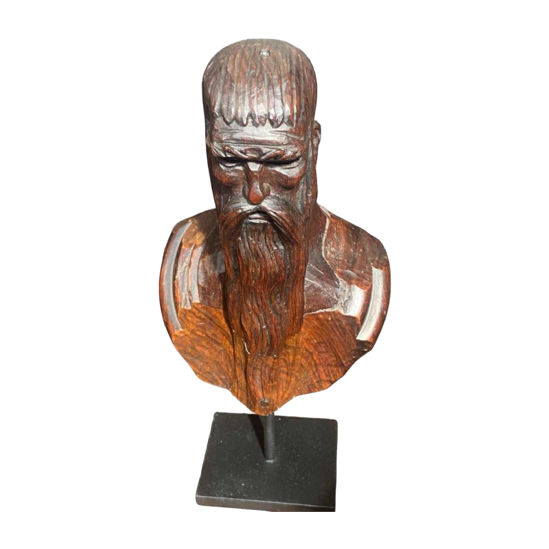 Marcel Wolfers "Hoofd van een Chinese wijze", houten sculptuur