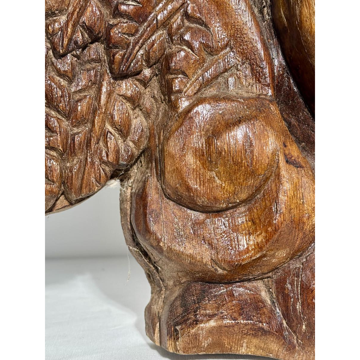 Het haar wordt verlevendigd door weelderige, gebeeldhouwde krullen, die ritme en présence aan het geheel verlenen. De uitgestrekte, gestileerde en grafische vleugels accentueren de compositie en versterken de monumentaliteit van het werk.