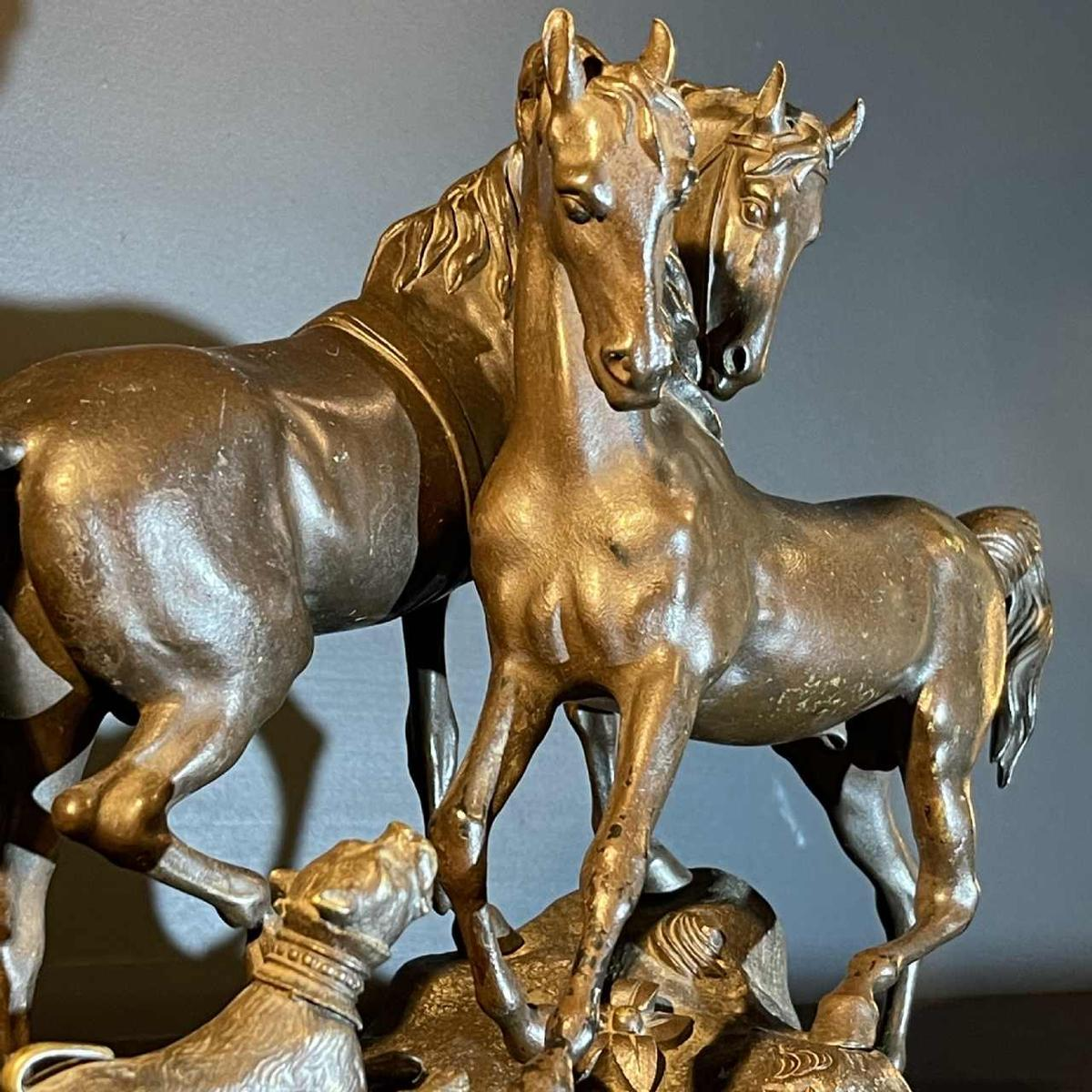 "L'accolade" dier sculptuur, bronzen dieren paard / paarden, 19e eeuw