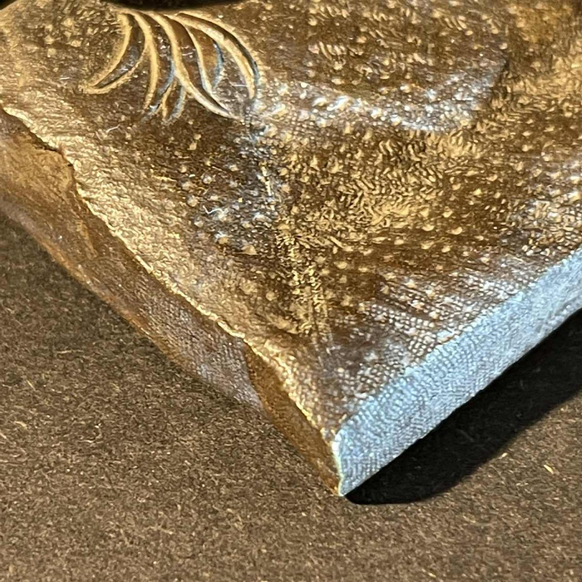 Een kwalitatieve bronzen groep met een bruin patina, rustend op een vrij gevormd terras dat een fijn geciseleerde natuurlijke grond voorstelt (zie detail afbeeldingen).