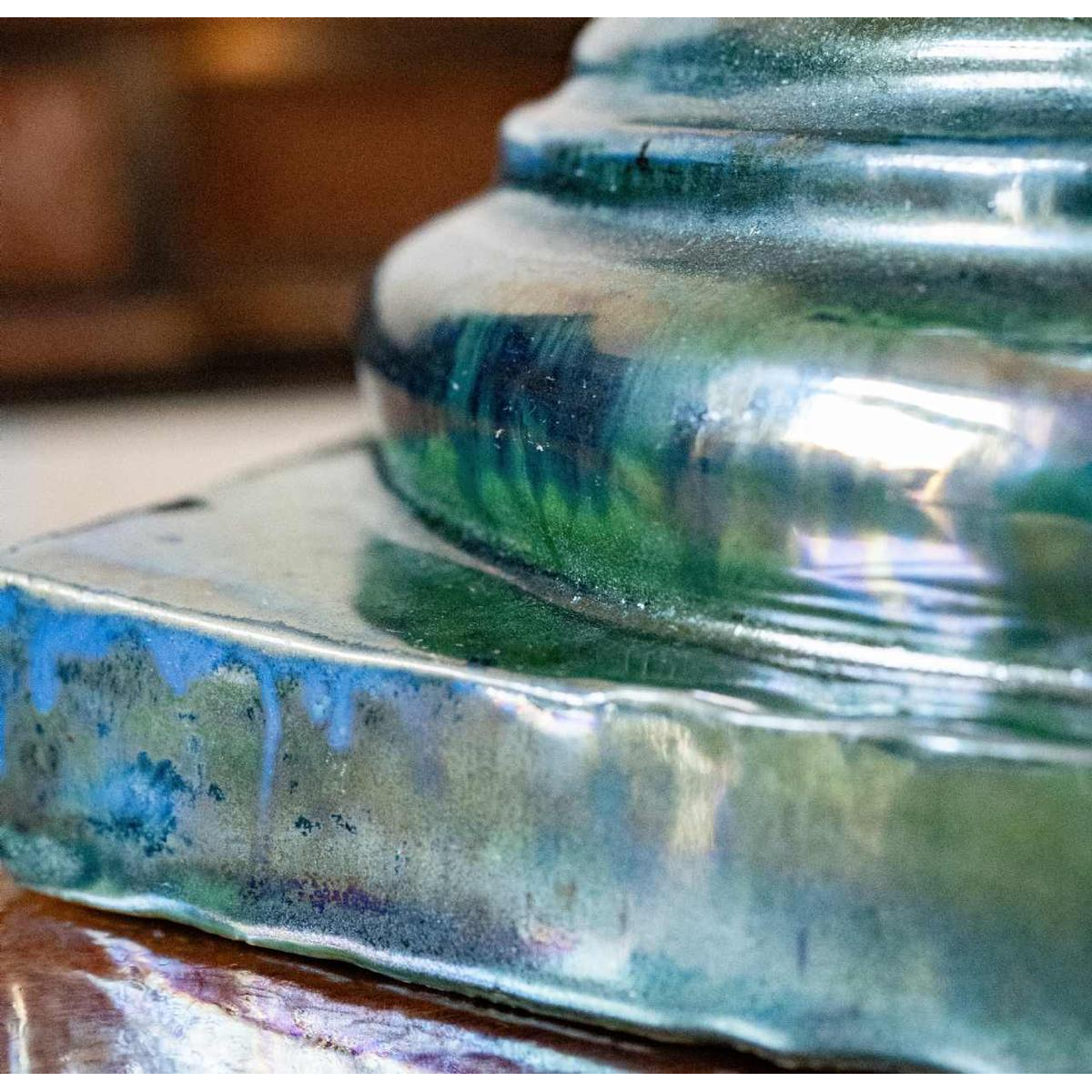 De emaillering en het iriserende glazuur zijn perfect uitgevoerd.