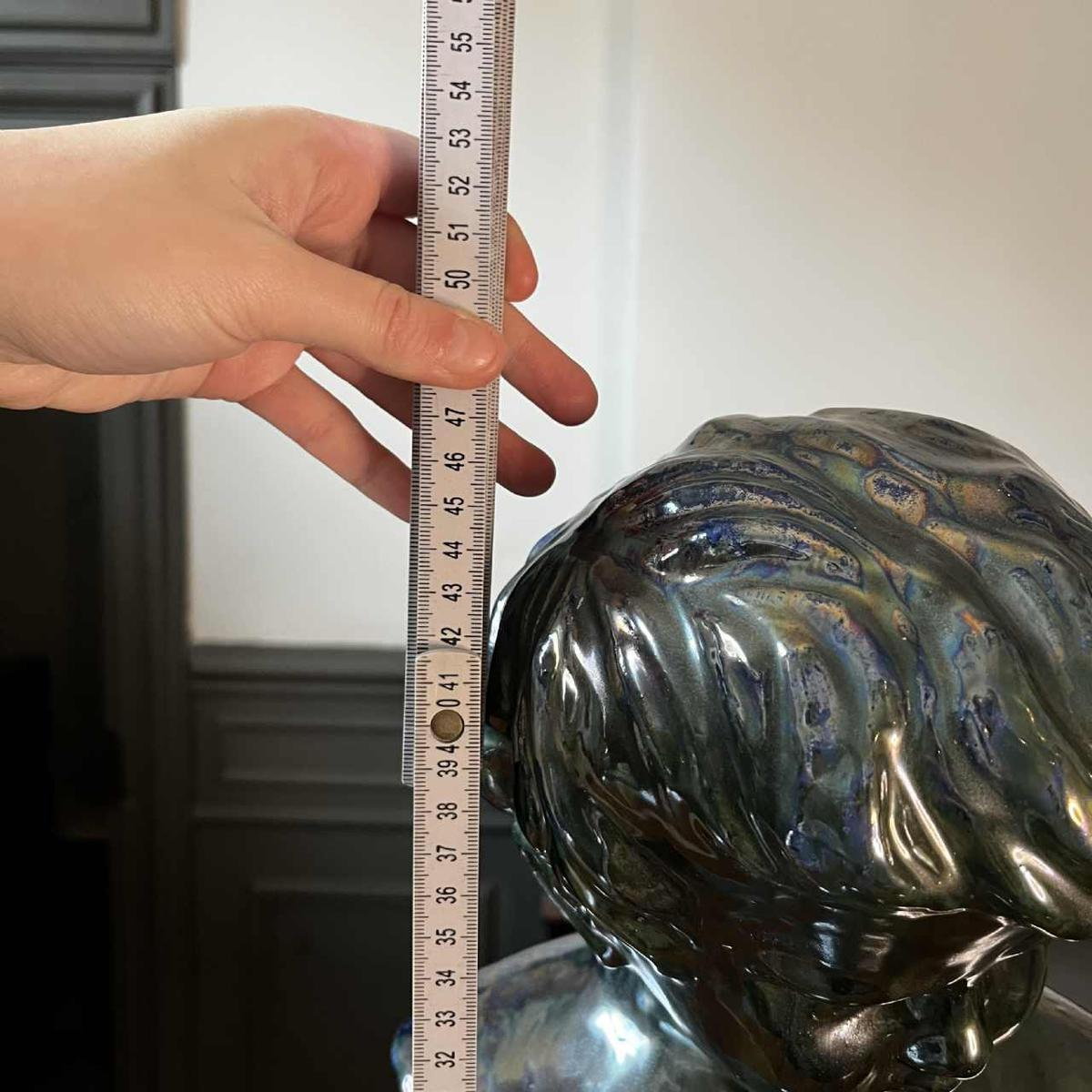 This form is only used to notify us of illegal content on product: Louis Gustave Cambier & Roger Guérin, sculptuur “Buste van een jonge jongen” gezouten steengoed, Bouffioulx ca 1925.