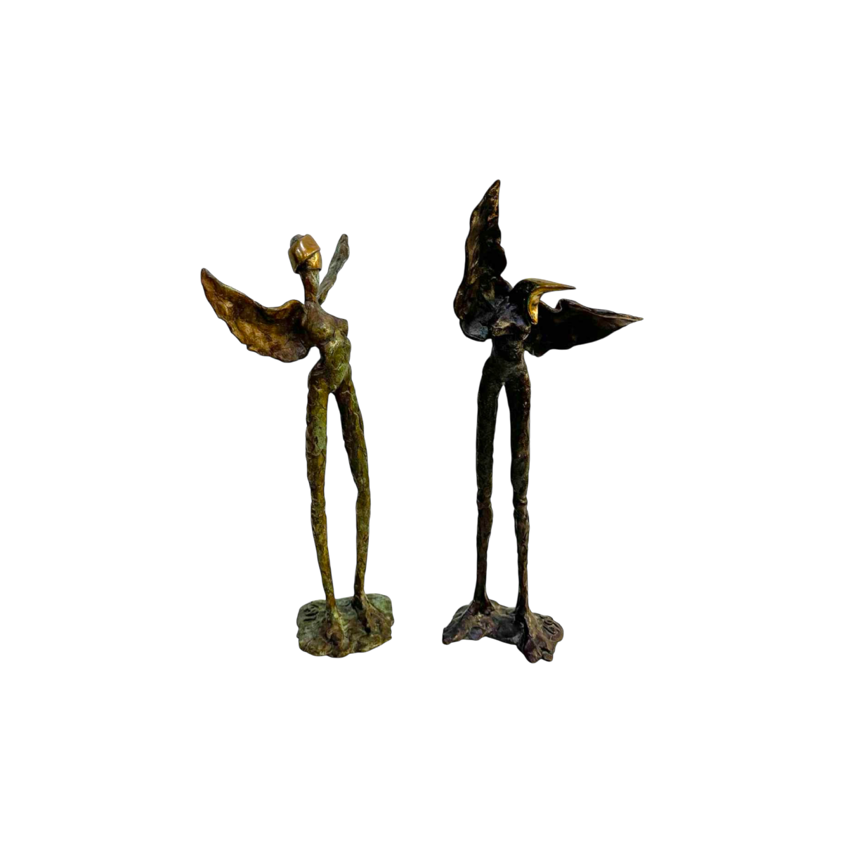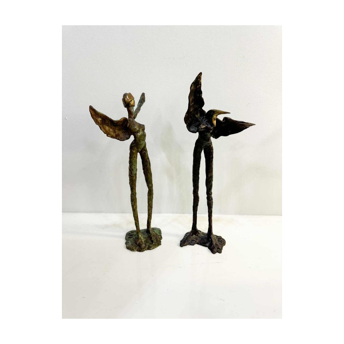 Georges Ayvayan, paar expressionistische/surrealistische bronzen standbeelden, 1993