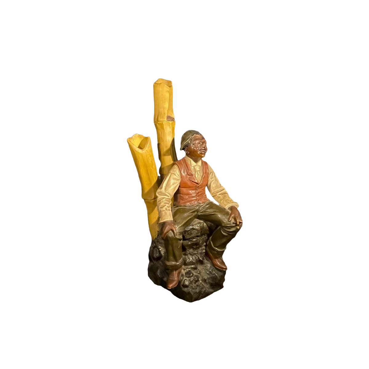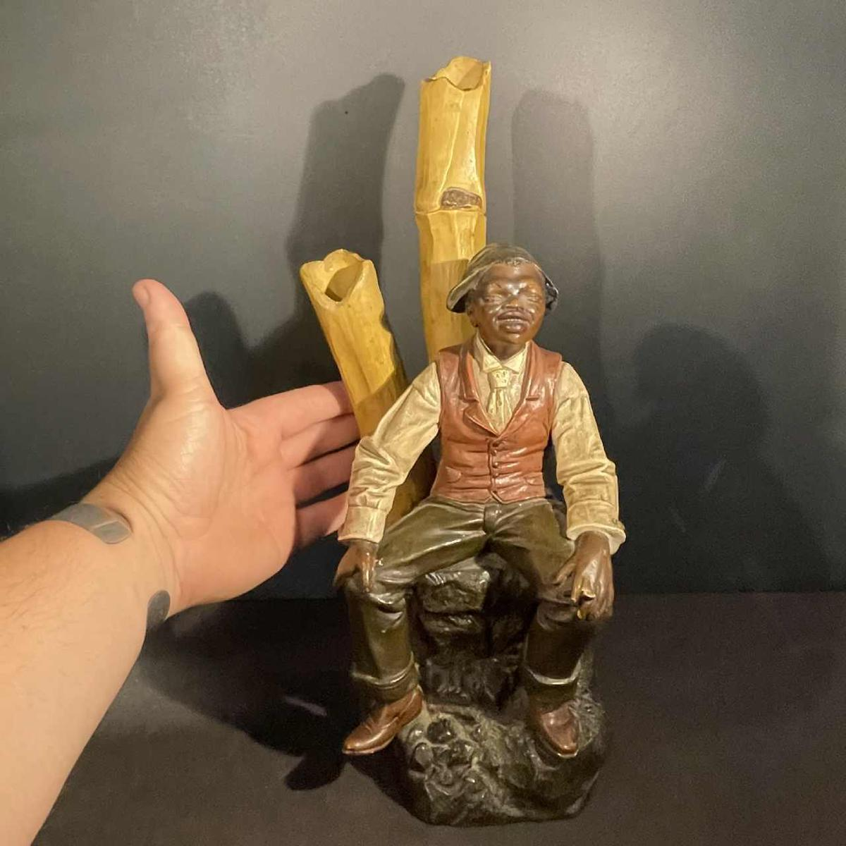 "De pauze" sculptuur van een Afro-Amerikaanse man in ruste, in Oostenrijkse klei door Johann Maresch. Nr. 6489, ca. 1890.