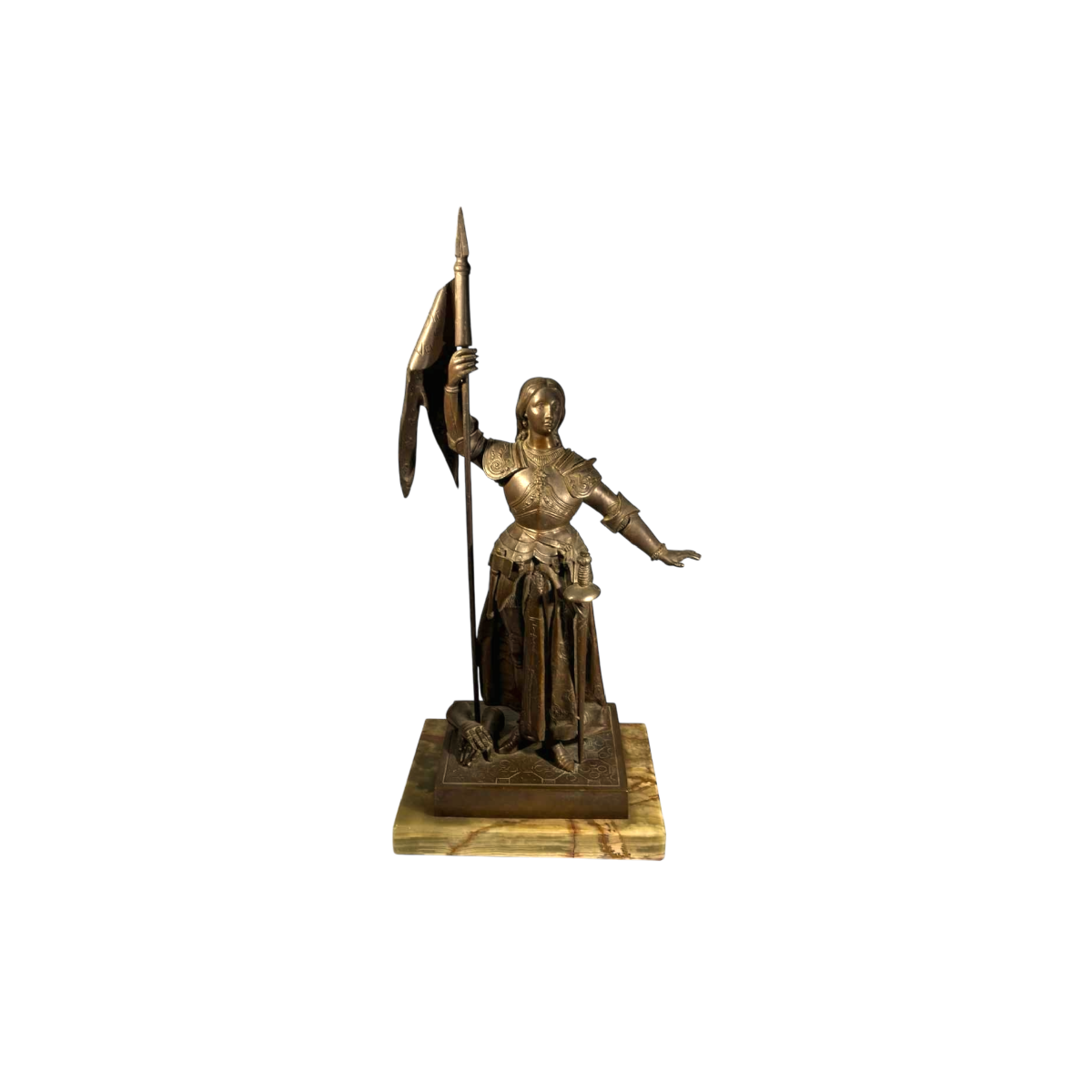 (https://www.artaplaza.com/nl/beeldhouwwerk-figuratieve-kunst-vrouwen/262-jeanne-d-arc-in-harnas-bij-de-kroning-van-koning-charles-vii-naar-ingres-bronzen-sculptuur-met-bruine-patina-19e-eeuw.html)