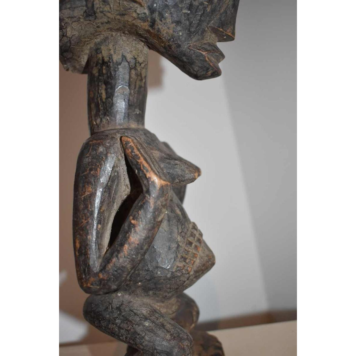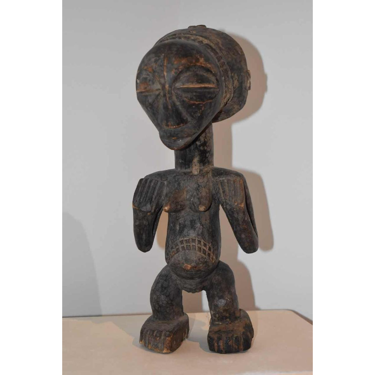 Dit beeldje, een belangrijk thema in de Afrikaanse kunst, is sterk gestileerd maar draagt niettemin de kenmerkende kenmerken die de moederlijke elementen van het beeldje benadrukken: prominente buik, gemarkeerde navel, getekende, zware, moederlijke borsten, riem die haar buik markeert en gestileerde hoofdtooi.