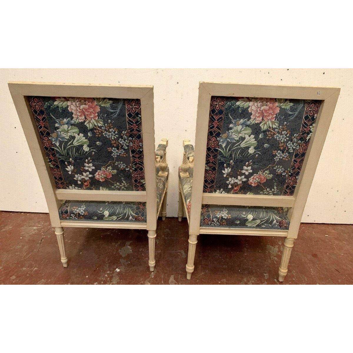 Dit formulier wordt alleen gebruikt om ons te informeren over illegale inhoud op product: Een paar fauteuils in Lodewijk XVI-stijl, wit gelakt beukenhout en tapijt, 20e eeuw..