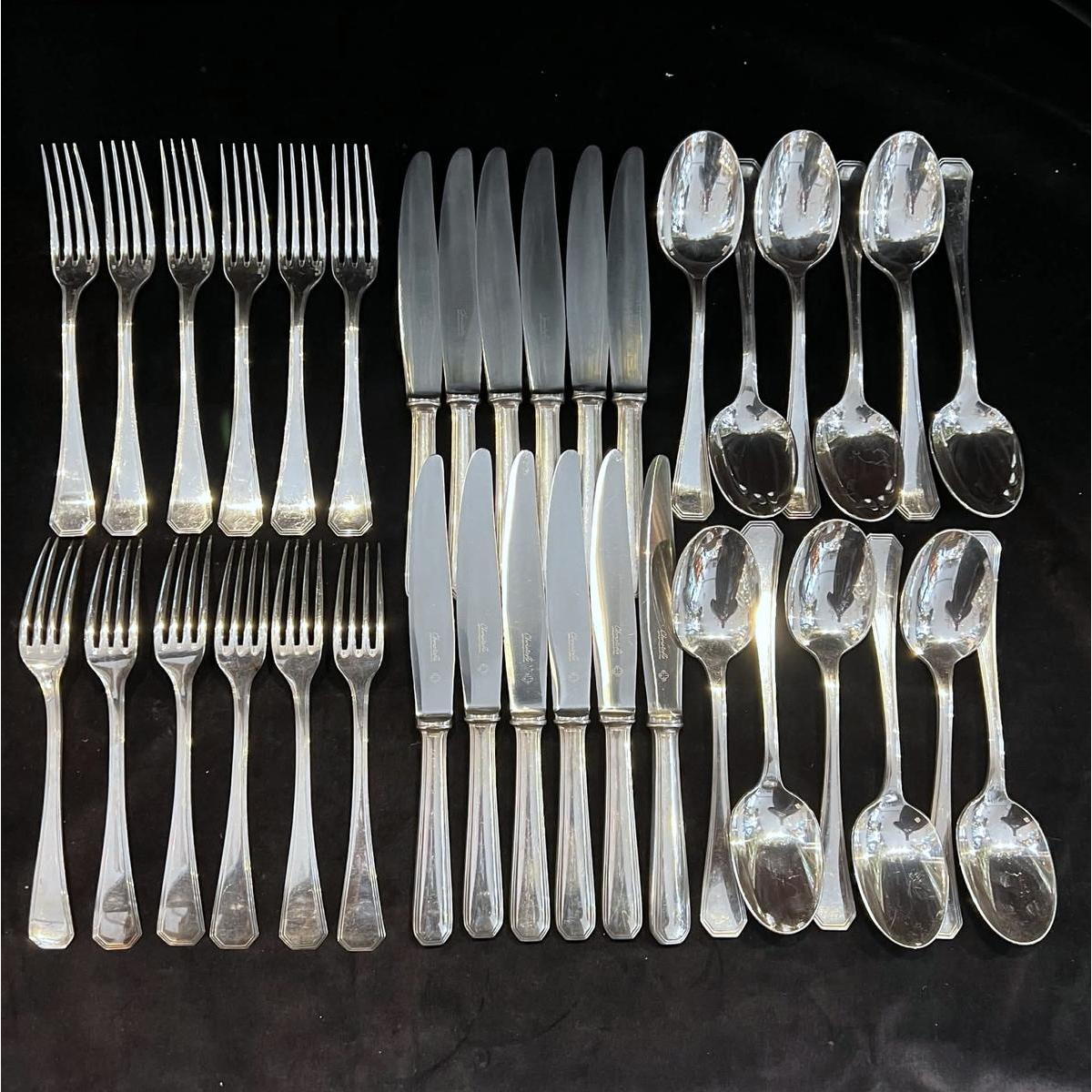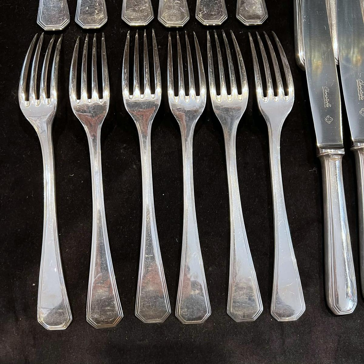 Luc Lanel voor Christofle, GALLIA-collectie, AMERICA Art Deco-model in verzilverd metaal, 36 stuks