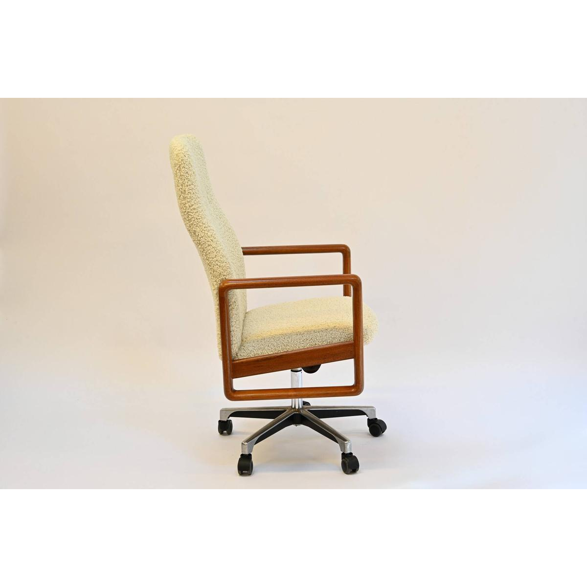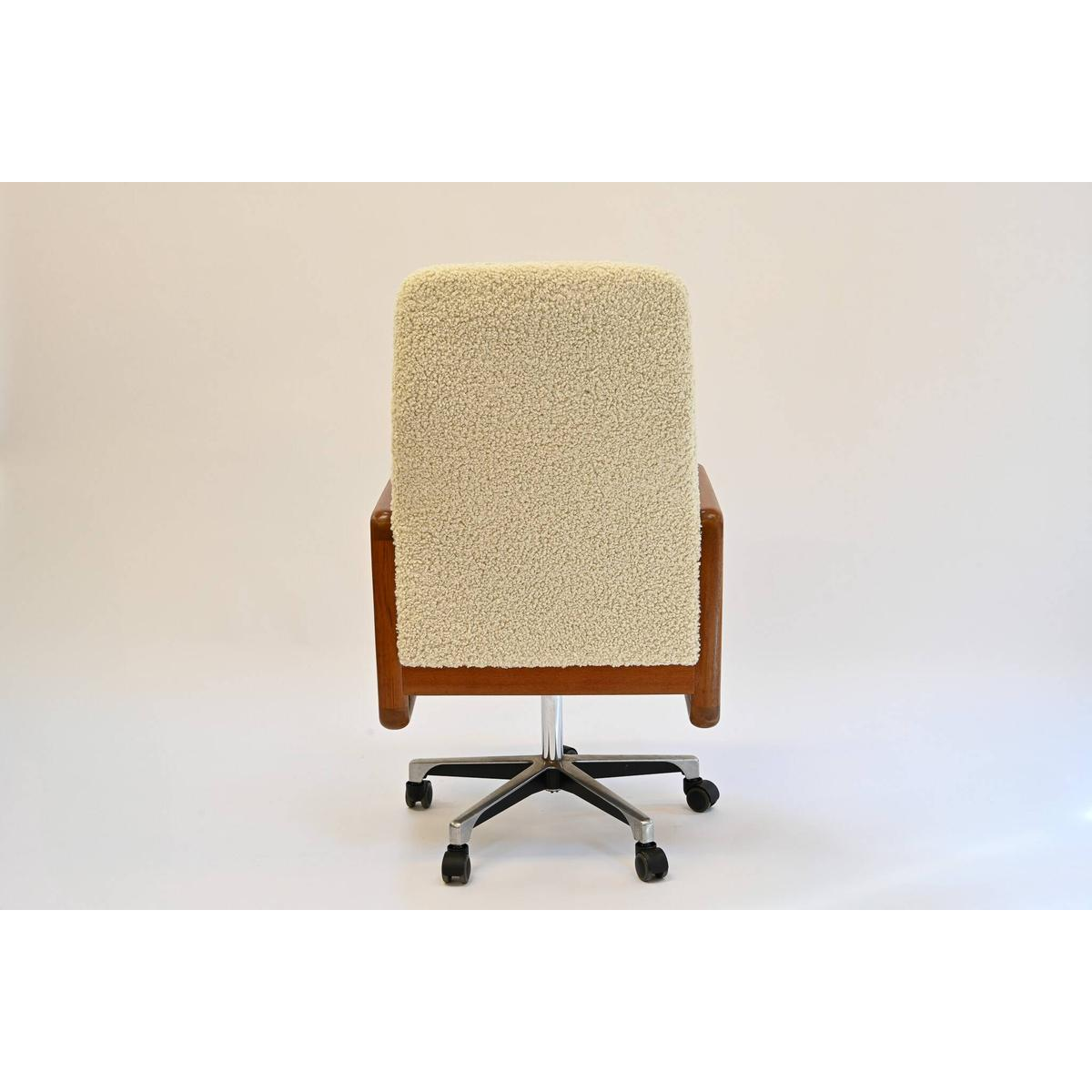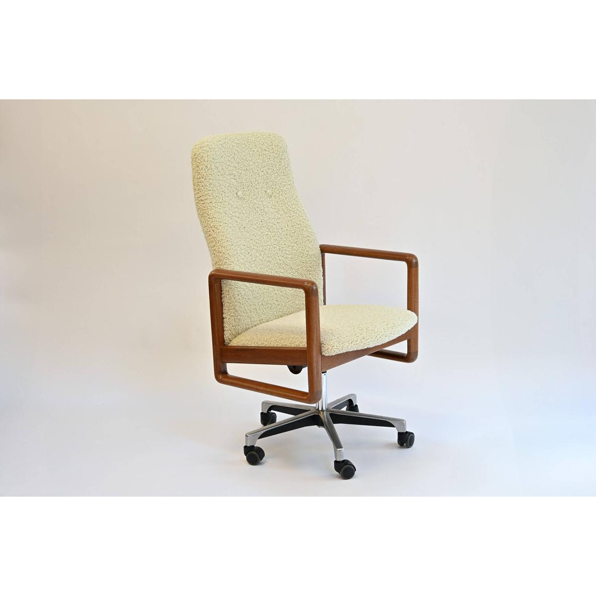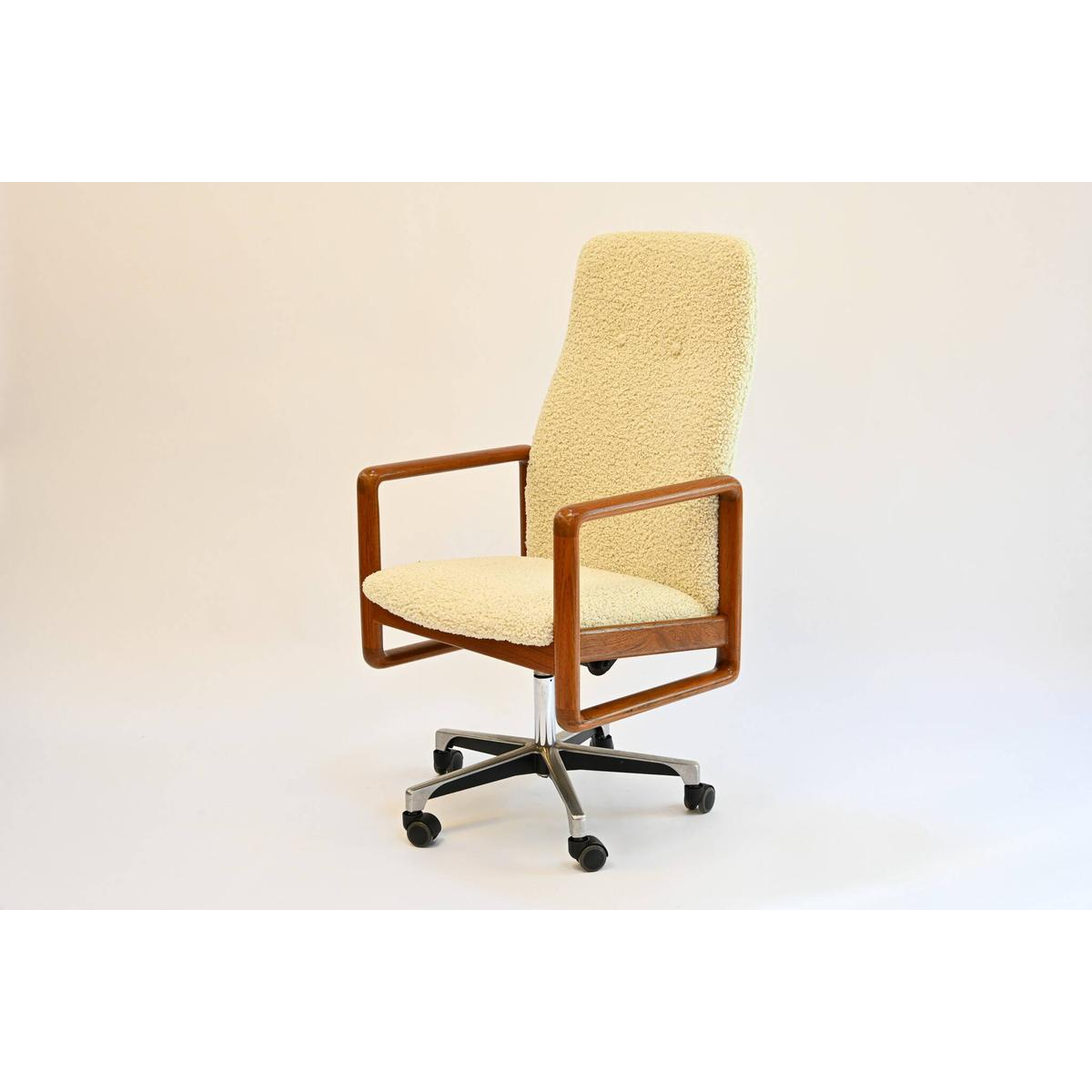 Teakhouten bureaustoel uit 1960, volledig gerestaureerd, in zeer goede staat. Bekleed met witte lusstof.