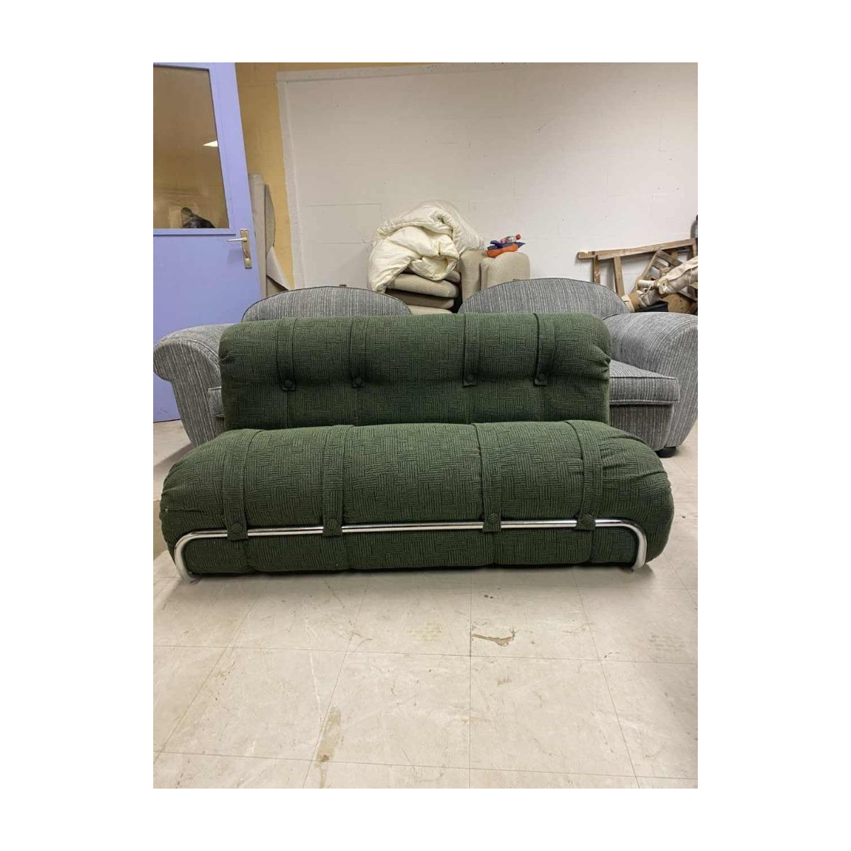 This form is only used to notify us of illegal content on product: Gerestaureerde vintage bank toegeschreven aan MEUROP, groene Chamick stof, verchroomd stalen buisframe, ca 1960.
