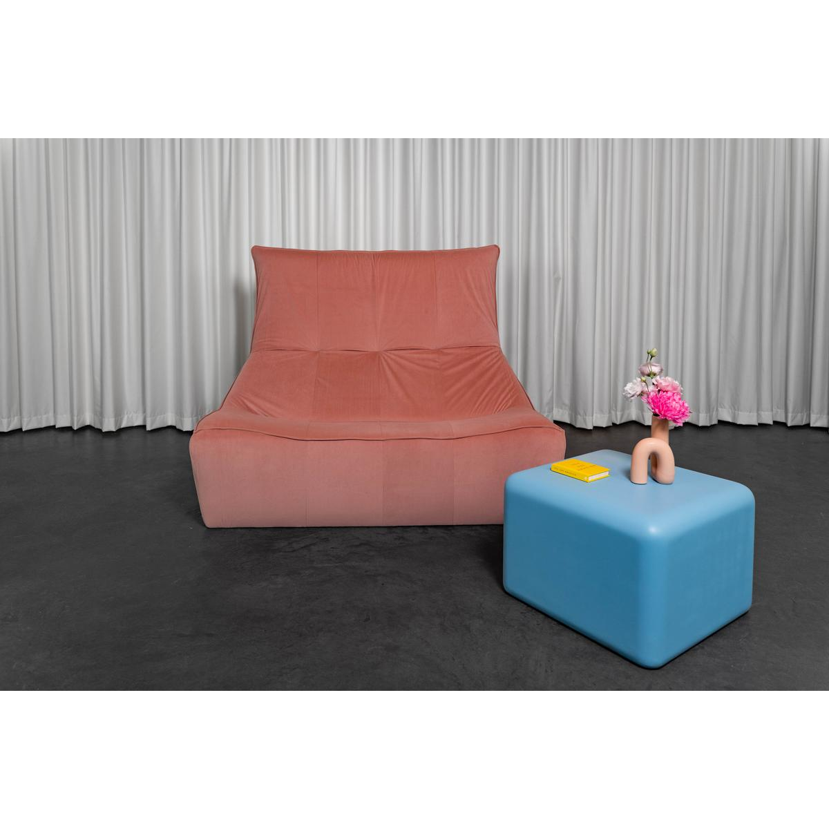 Bank The Rock door Gerard Van den Berg voor Montis, Nederland, 1970. Deze 2-zitsbank is volledig opnieuw bekleed met zachtroze fluweel.
