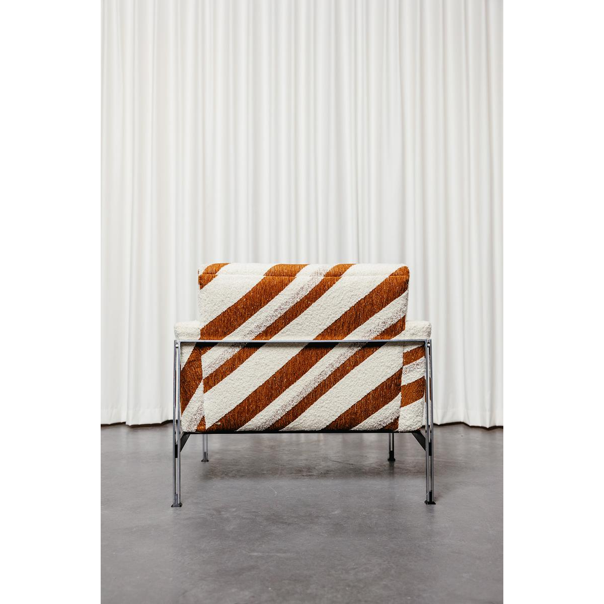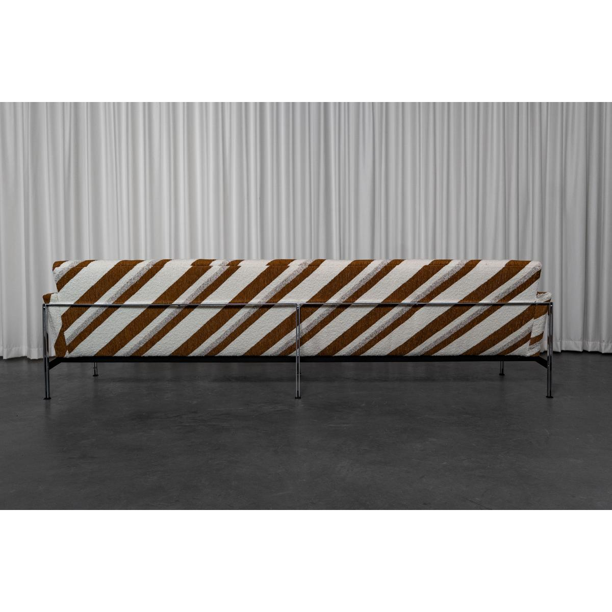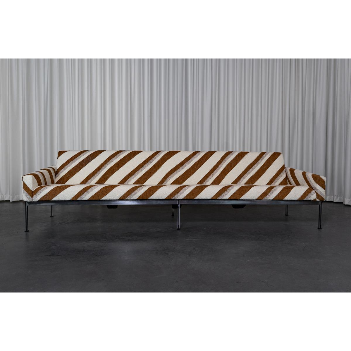 Bank en fauteuil van Wolfgang Herren voor Lübke, Duitsland, 1960. Deze bank en fauteuil op een dun metalen onderstel zijn volledig opnieuw gestoffeerd en bekleed met een gestreepte jacquardstof van Casamance.
