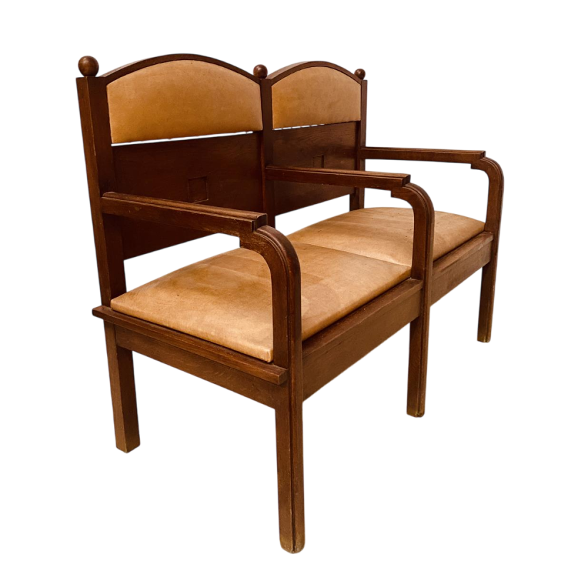 Art Deco tweepersoonsbank van massief mahoniehout.