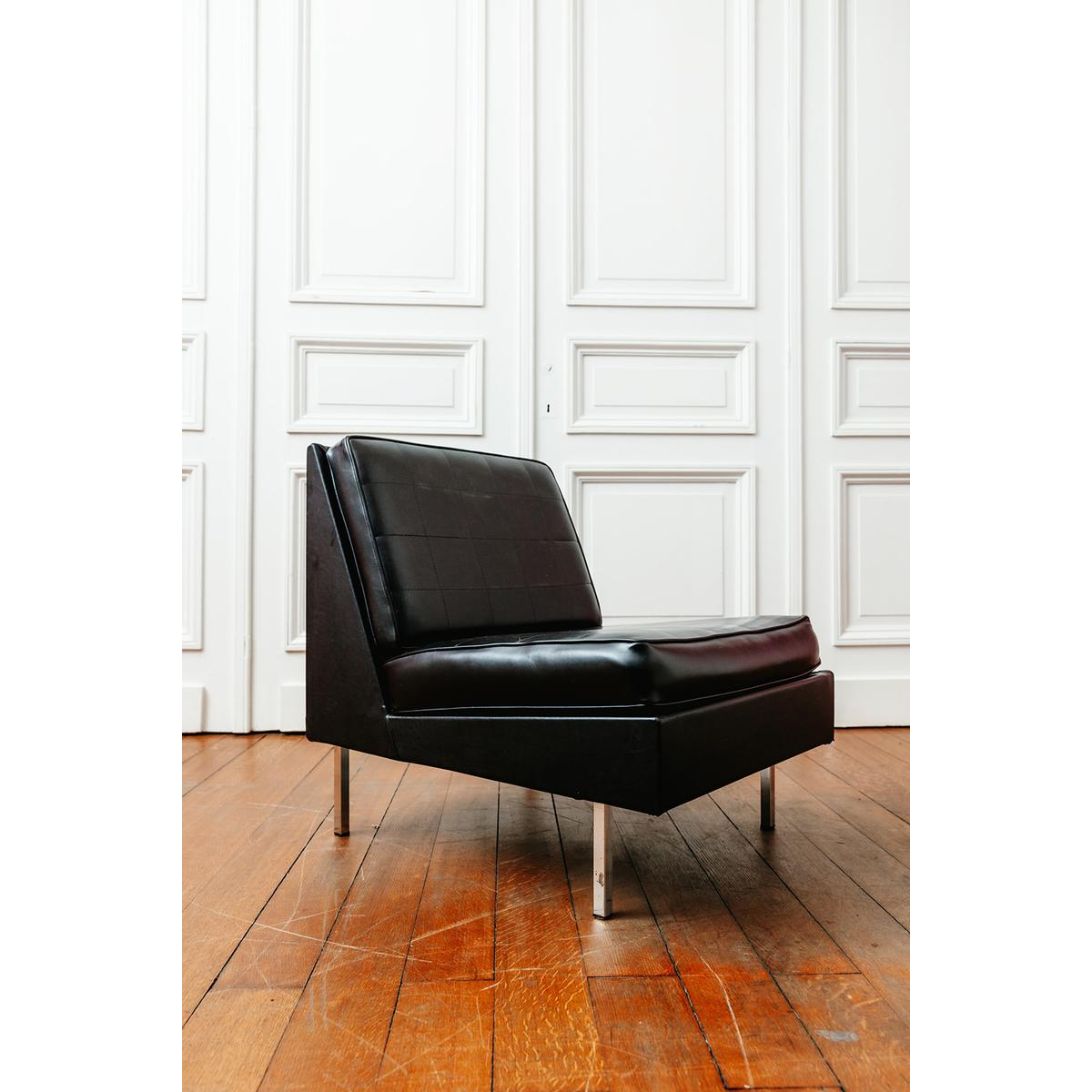 Dit formulier wordt alleen gebruikt om ons te informeren over illegale inhoud op product: Zwarte vinyl fauteuil, circa 1960.